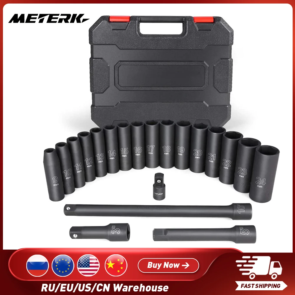 Гаечный ключ, универсальный торцевой инструмент с метрическим приводом, 1/2 дюйма, для пневматических ремонтных инструментов, 20 шт.