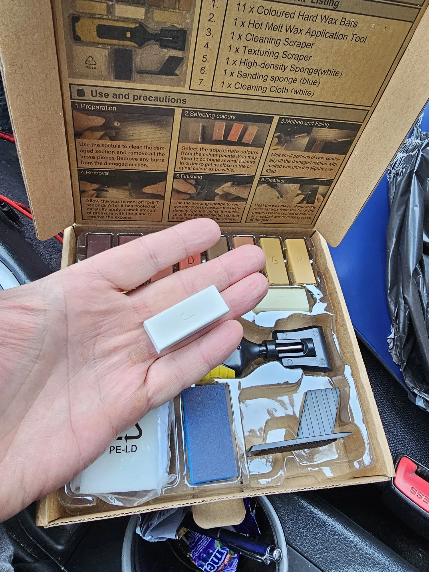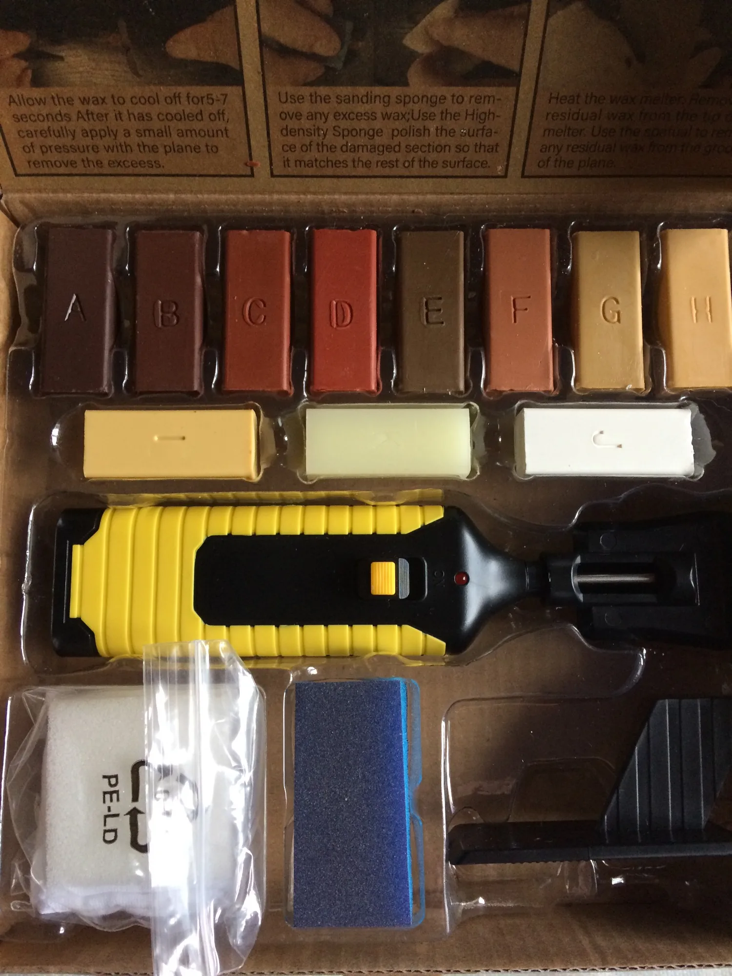 Воскоплавитель и набор воска для маскировки сколов и повреждений на мебели, плитке, полах