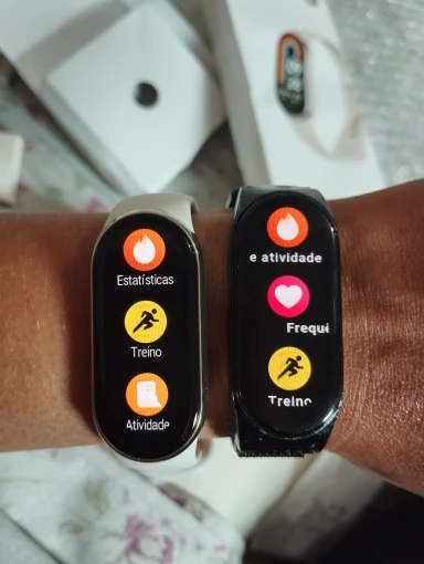 Прибыл очень быстро на амазонках (14 дней). Я сравнил фотографии с Mi Band 7 и Huawei band 8. Я думал, что браслет светло-розовый, но нет, он действительно белый, я буду покупать дополнительные услуги, потому что для тех, кто делает Кроссфит, он скоро будет пятнами. Отличное качество, а для тех, кто не является пользователем и хочет иметь, покупайте без страха, датчики точны для тренировок, особенно для тех, кто делает силовые тренировки, Кроссфит, И тому подобное, которому нужно идти в ногу со своим выступлением. Для тех, кто работает, им нужно использовать сопряженный сотовый телефон в качестве GPS, но результат очень точный и улучшается при низкой себестоимости. Удобные, это мой браслет дня, я даже не засыпаю, только для ванны.
