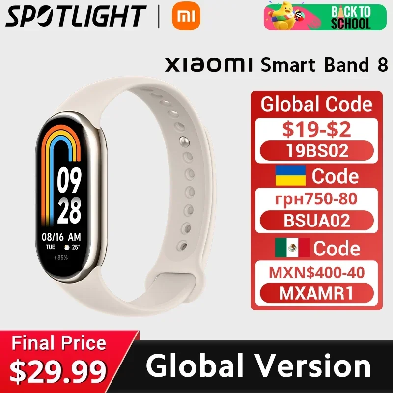 Глобальная версия Xiaomi Smart Band 8 Монитор кислорода в крови 1,62-дюймовый AMOLED-экран 16-дневный срок службы батареи