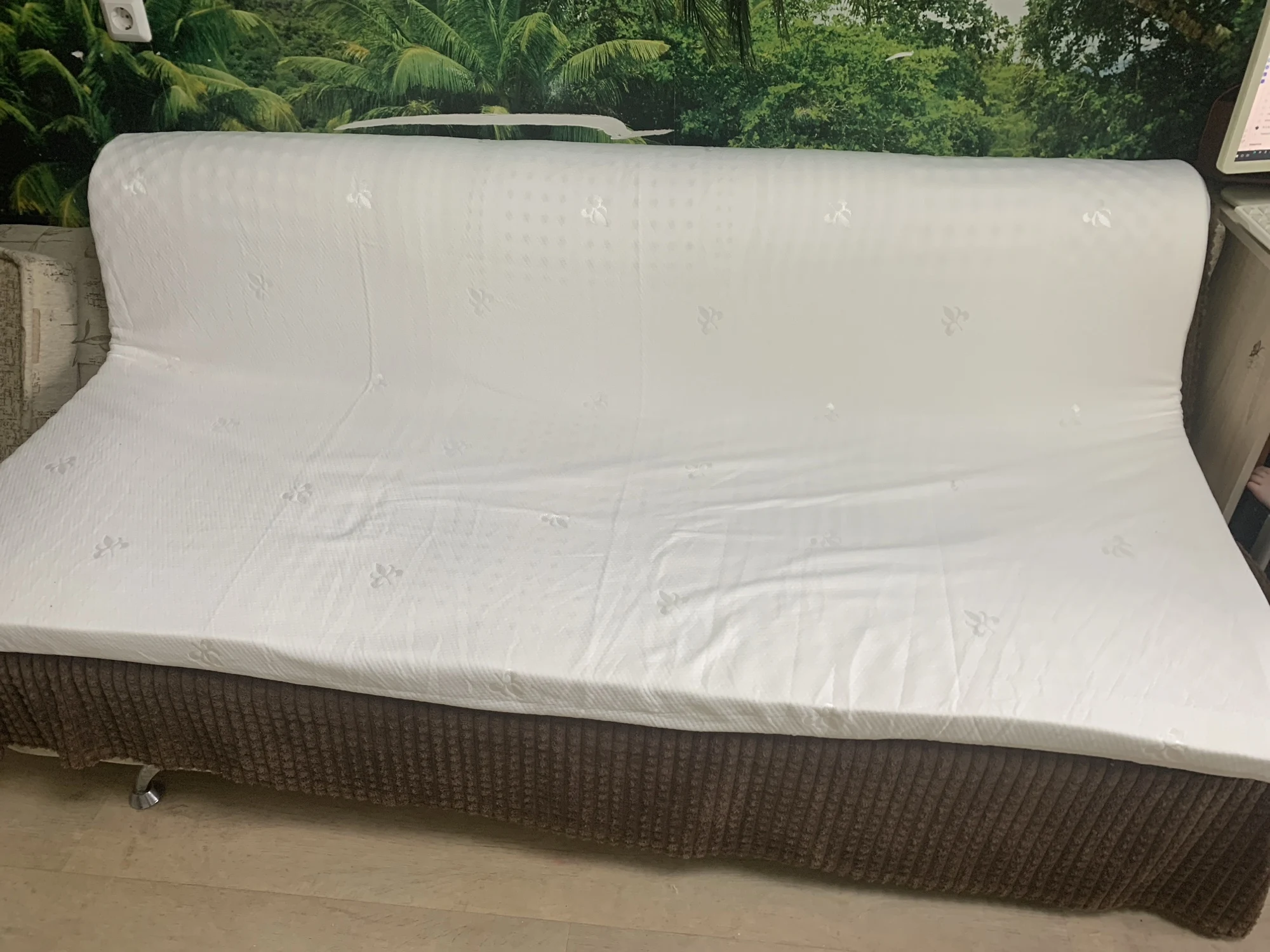 Матрас пришел в заводском чехле и сверху был наматрасник на молнии. Внешне все как на фото, правда вместо длины 200, прислали 190см( по высоте тоже вышло не 7,5, а 6-6,5 см. Легкий запах синтетики, проветрили на балконе и постирали сразу наматрасник. По ощущениям просто мягонько.Vyazovtseva S. 10 декабря 2023
