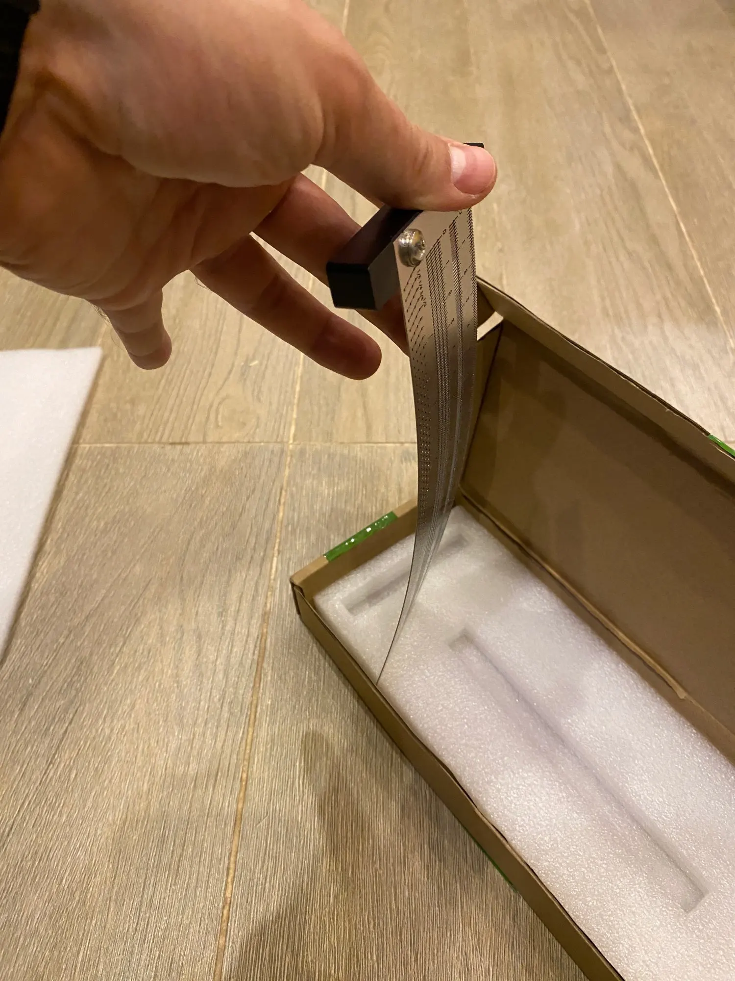 Заказал 11.11.2021 и 21.11.2021 курьер доставил домой (Саратов). Комплектация полностью соответствует описанию. Металл на линейке не толстый, поэтому обращаться нужно осторожно, хранить в заводской упаковке либо на стенде в висячем положении. Толщина стержней 0.5мм, конечно можно было положить и побольше, в футляре 12шт +1 вставлен в карандаш. Думаю позже закажу ещё 2 линейки (200мм и 400мм).Nikolay P. 21 ноября 2021