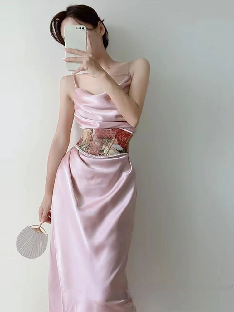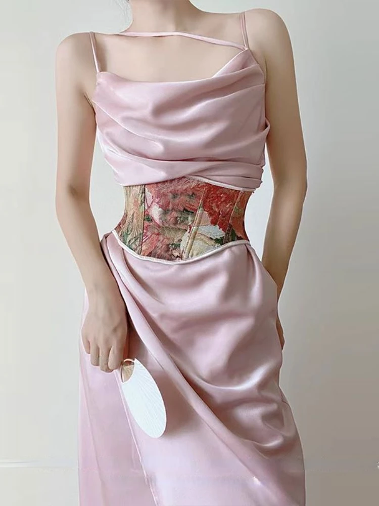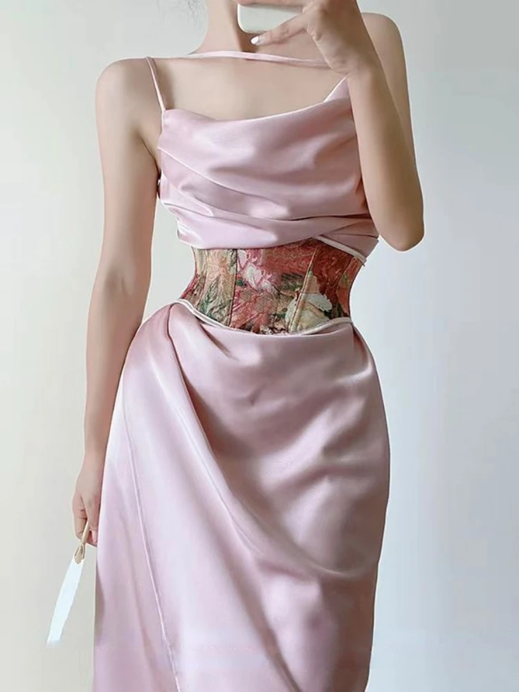 Летний элегантный сексуальный комплект из двух предметов, женская розовая французская милая фотография, винтажная туника с принтом + сказочное платье с рюшами, Новинка
