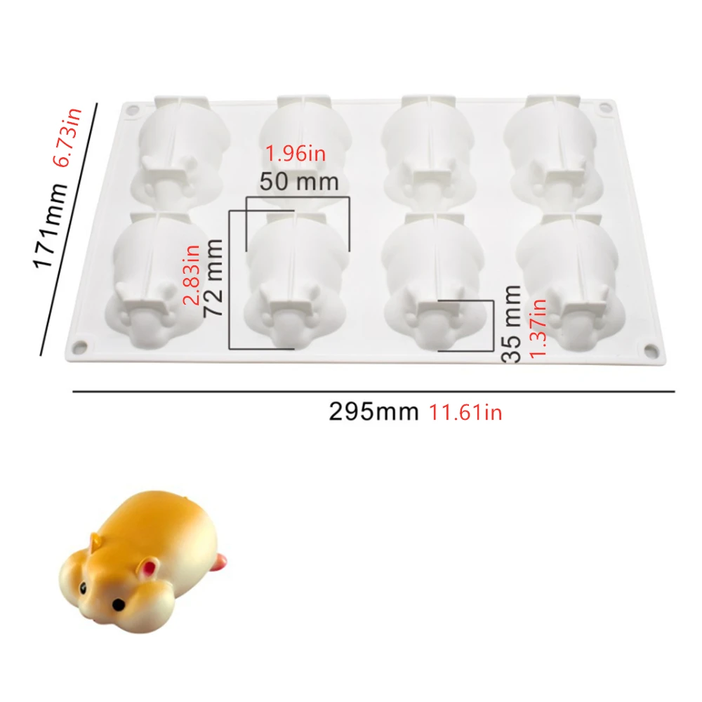 Силиконовая форма в форме мыши для хомяка, 8 ячеек