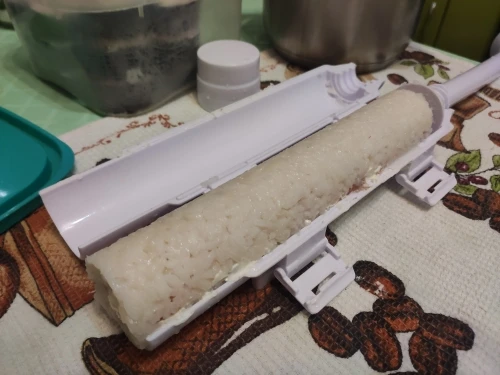 Мої рекомендації 100% Посилка прийшла раніше на декілька днів. Упаковка була надійною. Я замовляла колір Apricot. Формочка виявилася більшою ніж я собі уявляла. Пластмасою не пахне. Більш того, мене вразило наскільки добре ця формочка зроблена! Тобто якщо її навмисно не ламати, то вона навряд чи зламається сама. Коли робите суші з будь якою начинкою - будьте готові до того, що вони будуть великими (не такими як у суші барах). Також моя особиста рекомендація - майте при готуванні гострий ніж! Тому що коли будете різати норі - усе розвалиться! Фото: (я робила відео огляд для подруги, тому усі фото з процесу і не призентабільні)Кондачкова А. 17 марта 2023
