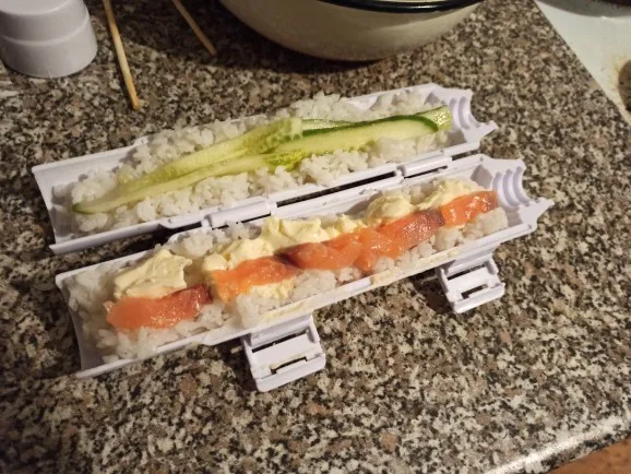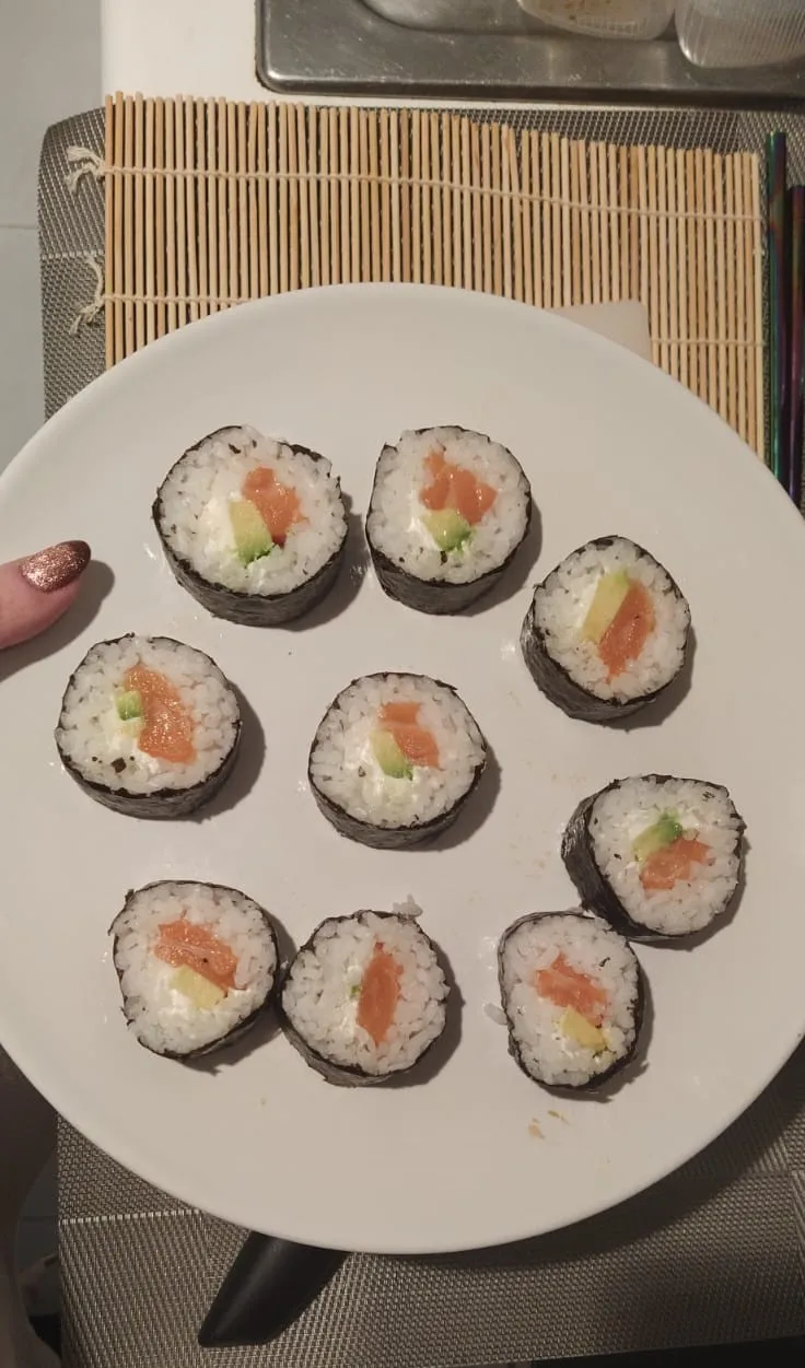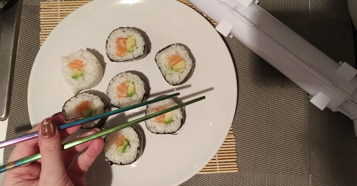 Я не эксперт в изготовлении суши, но, поскольку это мое любимое блюдо, я решили купить этот аппарат для приготовления суши: лучшее решение когда-либо. Первый был немного беспорядок, но в итоге вы станете лучше. Выглядит намного красивее, чем без ролика. Качество продукта соответствует ожидаемому, пластиковый материал и легко стирается. Посылка была доставлена так быстро (менее месяца, потому что я сделал заказ 5 ноября, и она была доставлена 22 ноября). Возможно, размер немного великоват, но другой, что я так доволен покупкой! (Моя рука и палочки для еды на фотографиях, чтобы вы могли видеть размер maki!)ES s. 6 декабря 2022