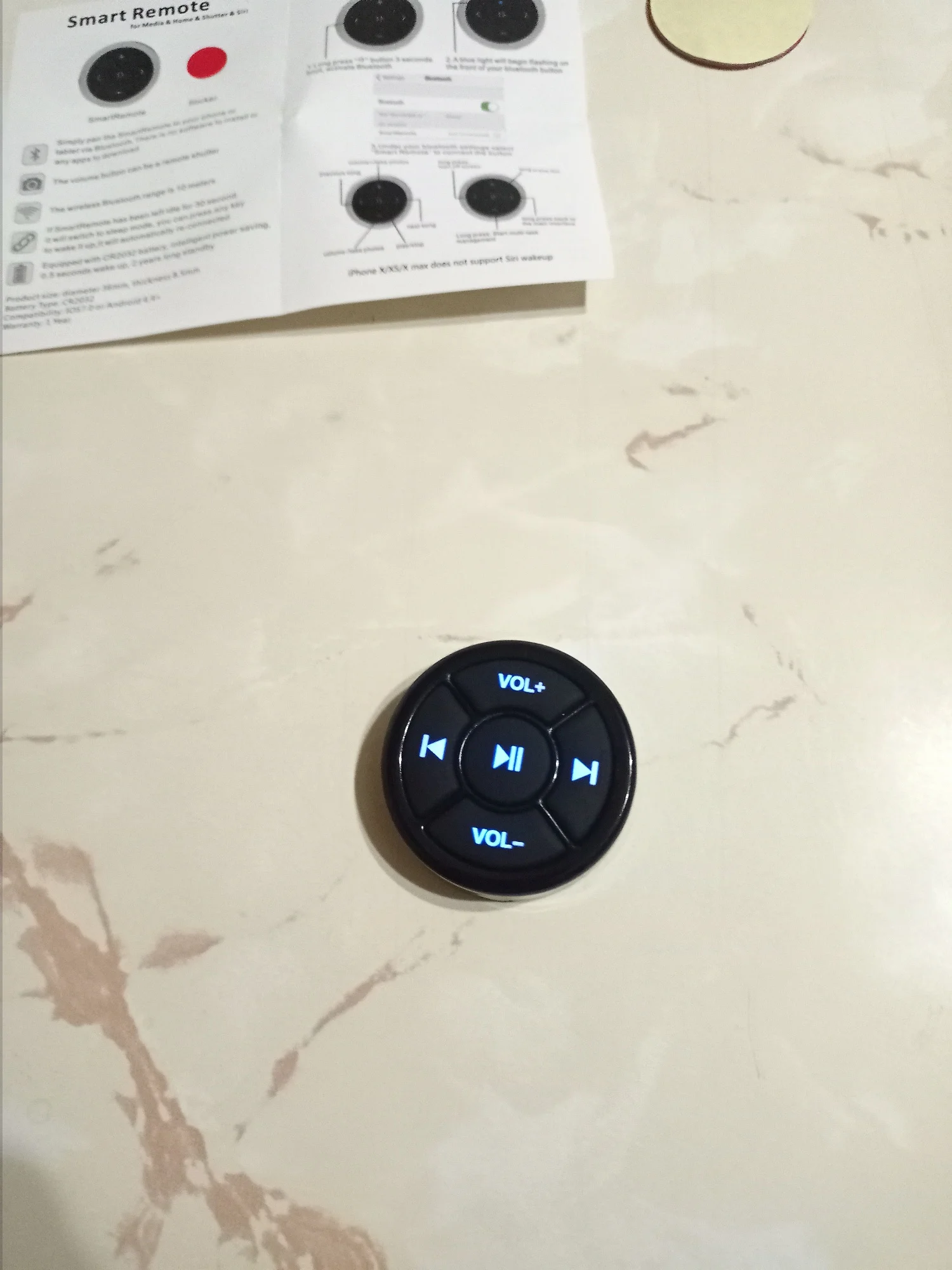 Быстрая отправка и доставка (до Латвии дошло за 2 недели). Сделано аккуратно, миниатюрная, приятно касаться (клавиши покрыты резиной). Подключился к смартфону без проблем, в дальнейшем подключается автоматом. Приклеил комплектным скотчем к удобному месту в машине. Интересно, насколько хватит батарейки. Покупкой доволен. ????
