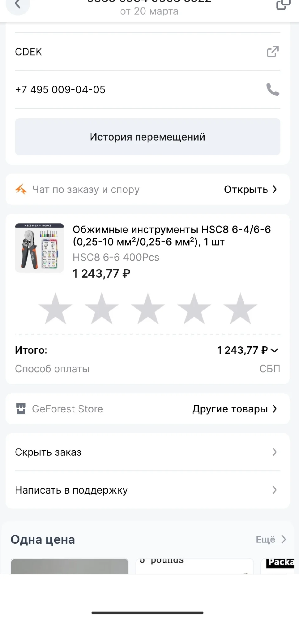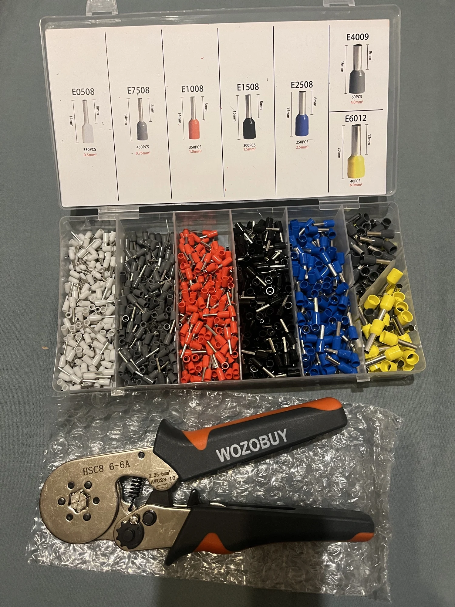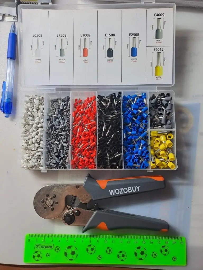 Довольно быстро получил то, что заказывал. Упаковано в пузырчатку. Ничего не пострадало при доставке, ничего не перепутано. Слишком большое для меня количество наконечников 0.5 мм.кв. Но выбранный небольшой набор позволит мне разобраться для чего и сколько понадобится цилиндриков в дальнейшем. Сам обжимной инструмент понравился. Аккуратный, в руке лежит хорошо, сильных люфтов не замечено. Зажимает хорошо. Из замеченных минусов : в комплект не вложена этикетка от набора наконечников. Всех наконечников чуть меньше, чем обещано.Александр К. 28 марта 2024