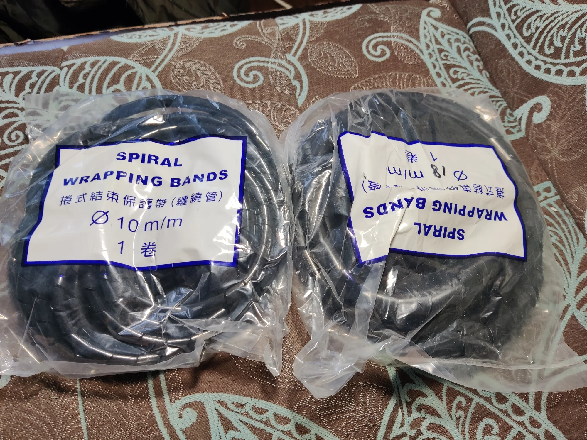 Лента спиральная разных диаметров для организации и защиты кабелей, проводов