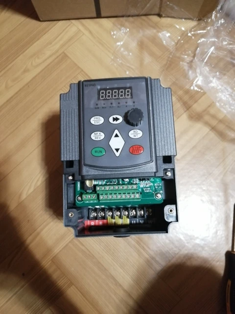 Беру уже второй именно такой и третий вообще, только первый был Ecogoo 9100, 2,2kW. Включается, работает. Да, тормозной ключ у них традиционно не распаян, резистор подключить не получится. Можно сносить паяльникам — впаяют. Торможение постоянным током работает.