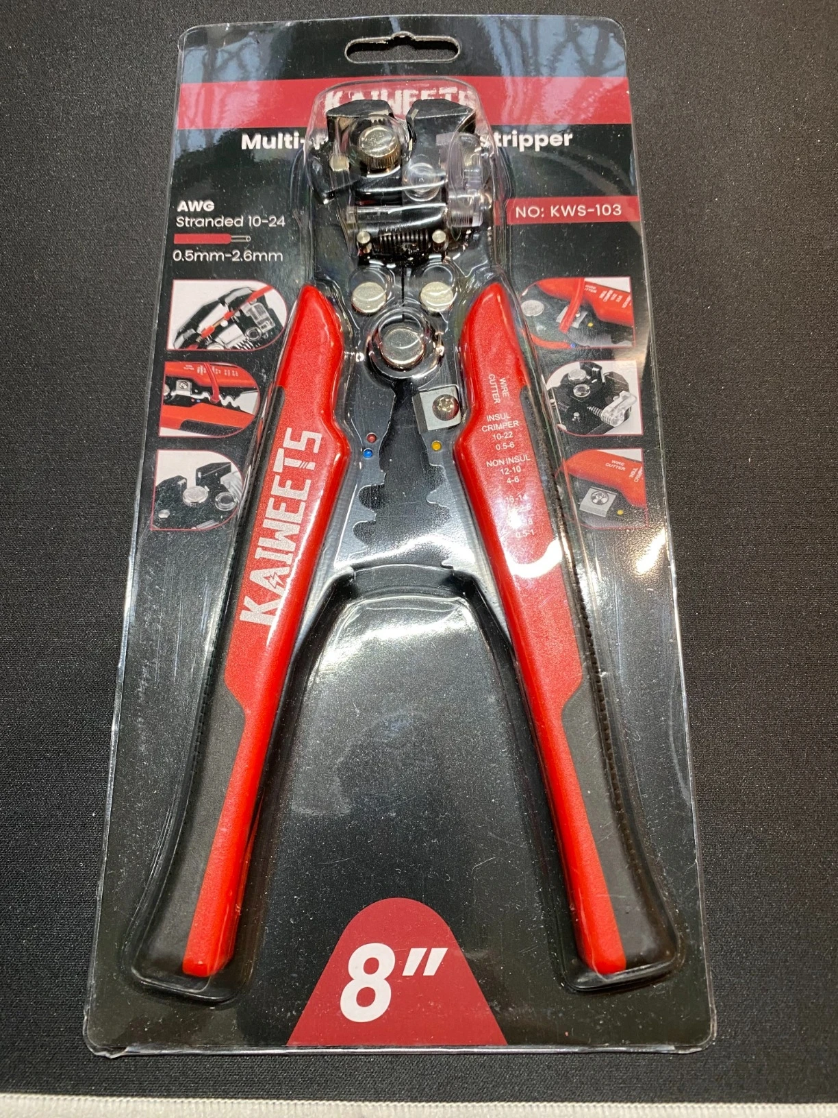 Это обзор автоматического инструмента для зачистки проводов марки KAIWEETS. Он поставляется в пластиковой упаковке пузырькового типа с разнообразной информацией о типах проводов / кабелей, с которыми он может работать, и т. Д. В использовании он работает очень хорошо - регулятор длины резки легко устанавливается, а захват кабеля регулируется. а также, и в целом, аккуратный маленький инструмент, плюс резак быстро делает свое дело. Обжим клеммы более чем адекватный и, возможно, лучше, чем одноразовый, который я использовал. Только что использовал его в процессе перемонтажа небольшого автомобильного прицепа сына, и он, безусловно, был способен резать, зачищать и обжимать кабель там, где раньше мы использовали пару инструментов для выполнения той же работы, плюс это быстро в использовании. По размеру он ненамного больше, чем плоскогубцы, и, учитывая его возможности, безусловно, достойный инструмент, который можно иметь в ящике для инструментов или в мастерской.lysunets K. 6 сентября 2022