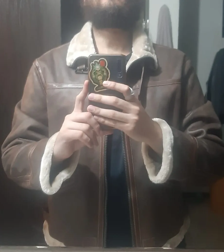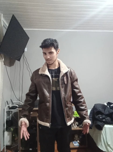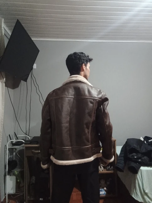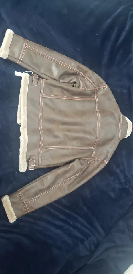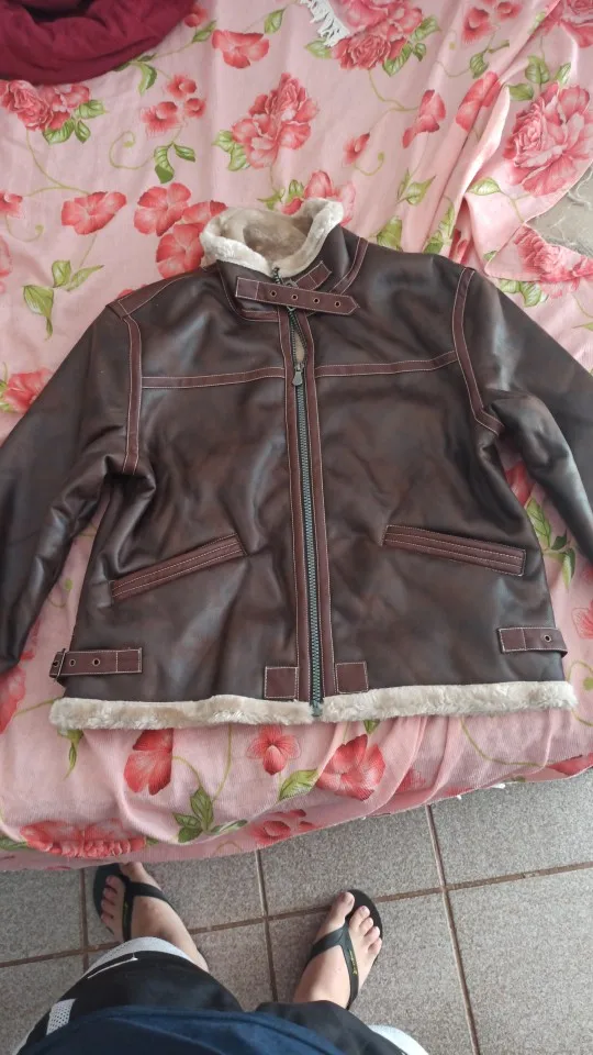 Просто удивительно, я боялся покупать, но она действительно красивая, буквально как Леон, конечно, не настоящая кожа и такая, вероятно, синтетическая искусственная кожа, но отделка, шерстяная подкладка, и ее дизайн потрясающий, я получил 1,70 и получил XL, и оказалось буквально идеально, Не говоря уже о том, что он прибыл очень быстро, вы можете покупать без страха