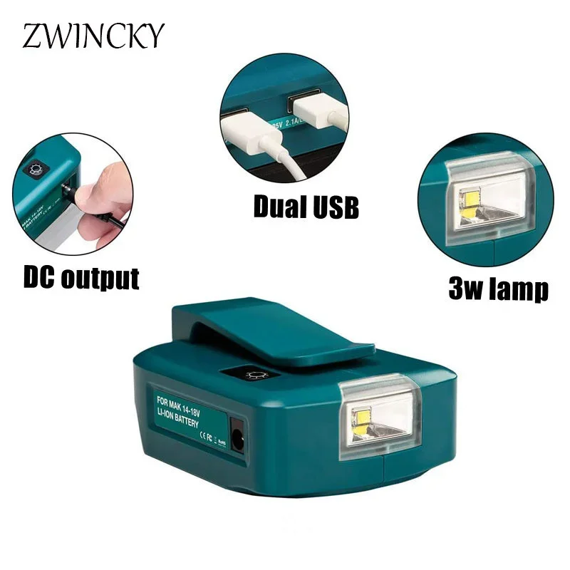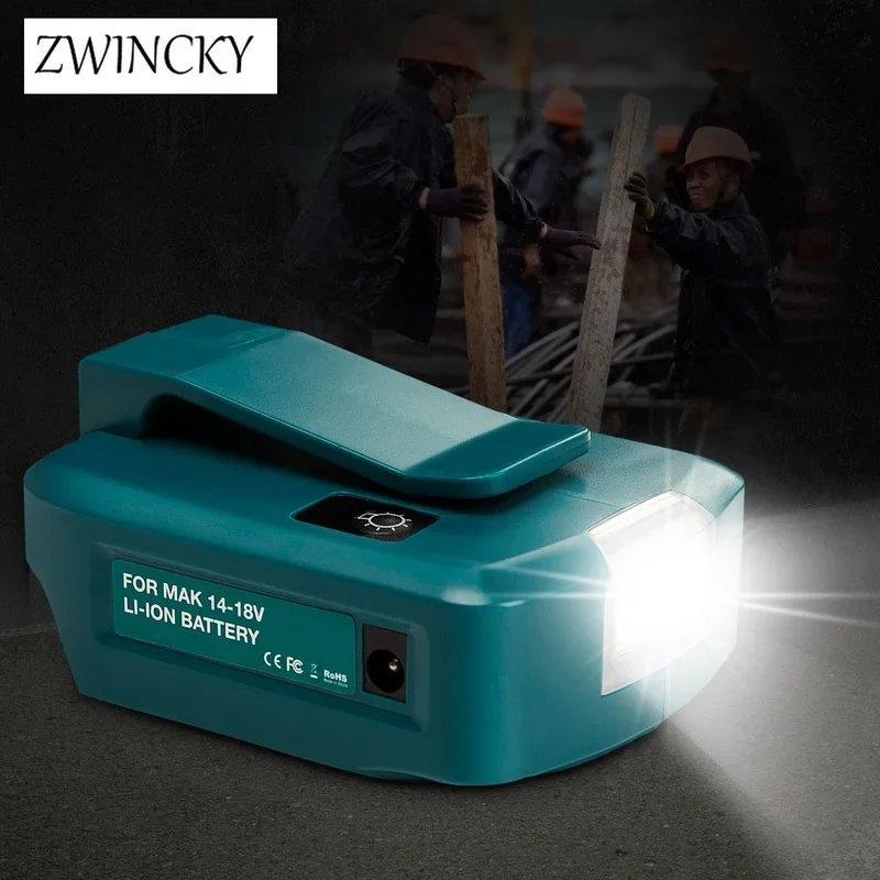Зарядное устройство с двойным USB, адаптер для литий-ионного аккумулятора, светодиодная вспышка 14,4 В/18 в для Makita BL1830 BL1430, конвертер с лампой, прожсветильник Тор для улицы
