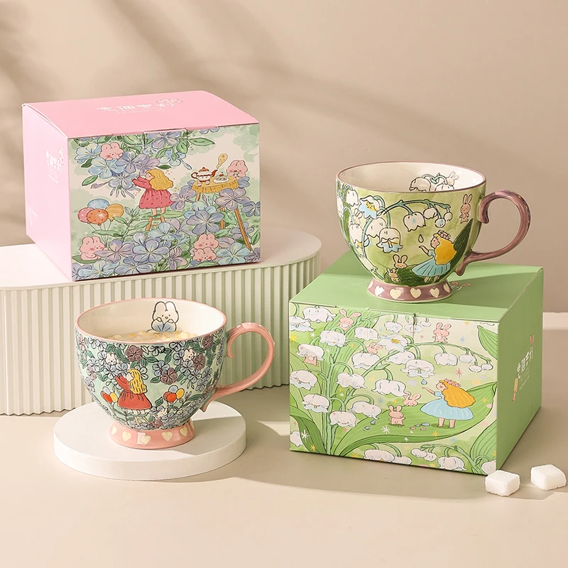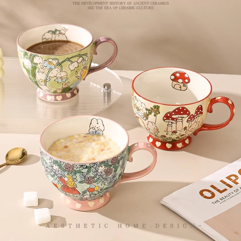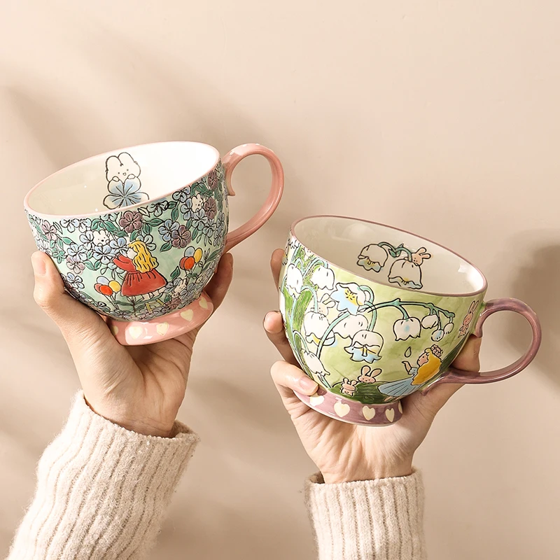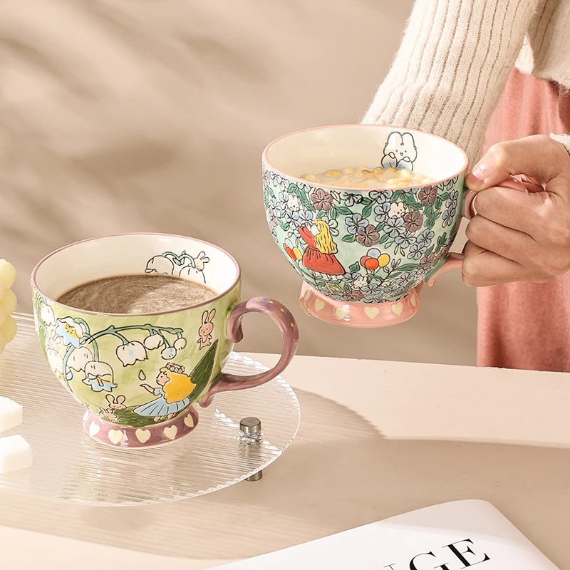 Креативная ручная роспись подглазурная цветная мультяшная керамическая чашка для воды большой емкости чашка для завтрака и молока кофейная кружка, Подарочная кружка на день рождения