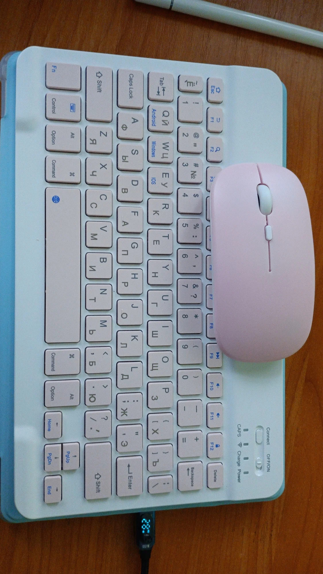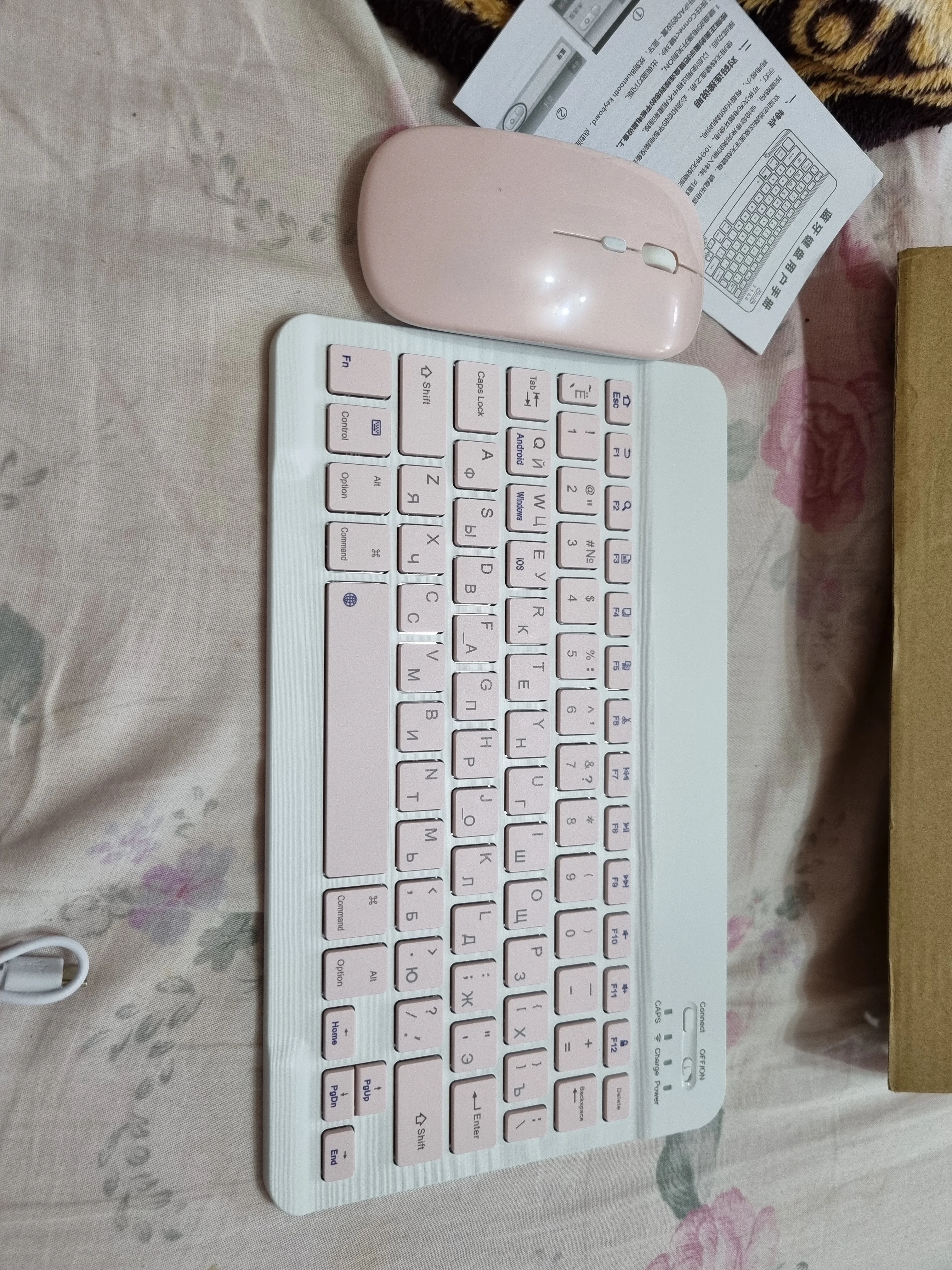 Клавиатура и мышка отличные,все работает с айпадом мини 5, мышка глянцевая,могут оставаться видные царапины, мышку можно подключать к компьютеру
