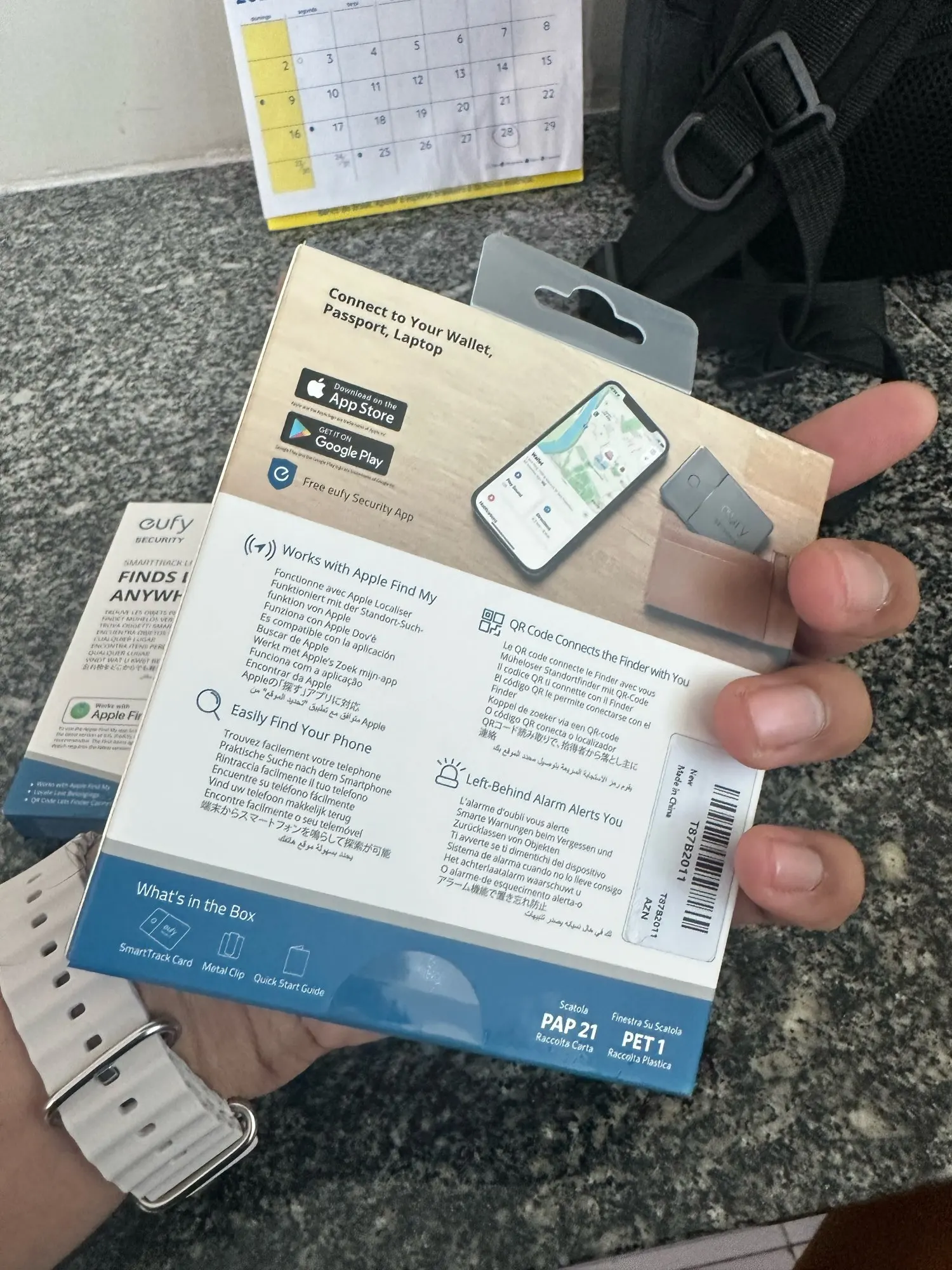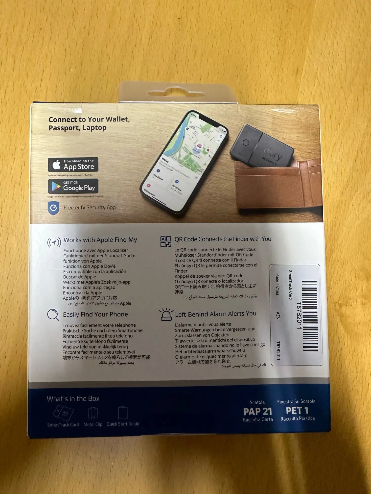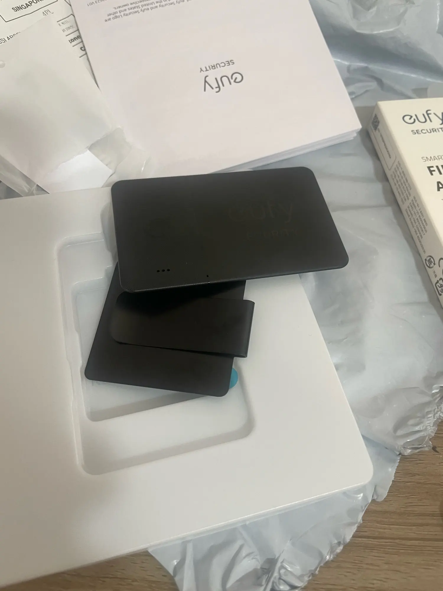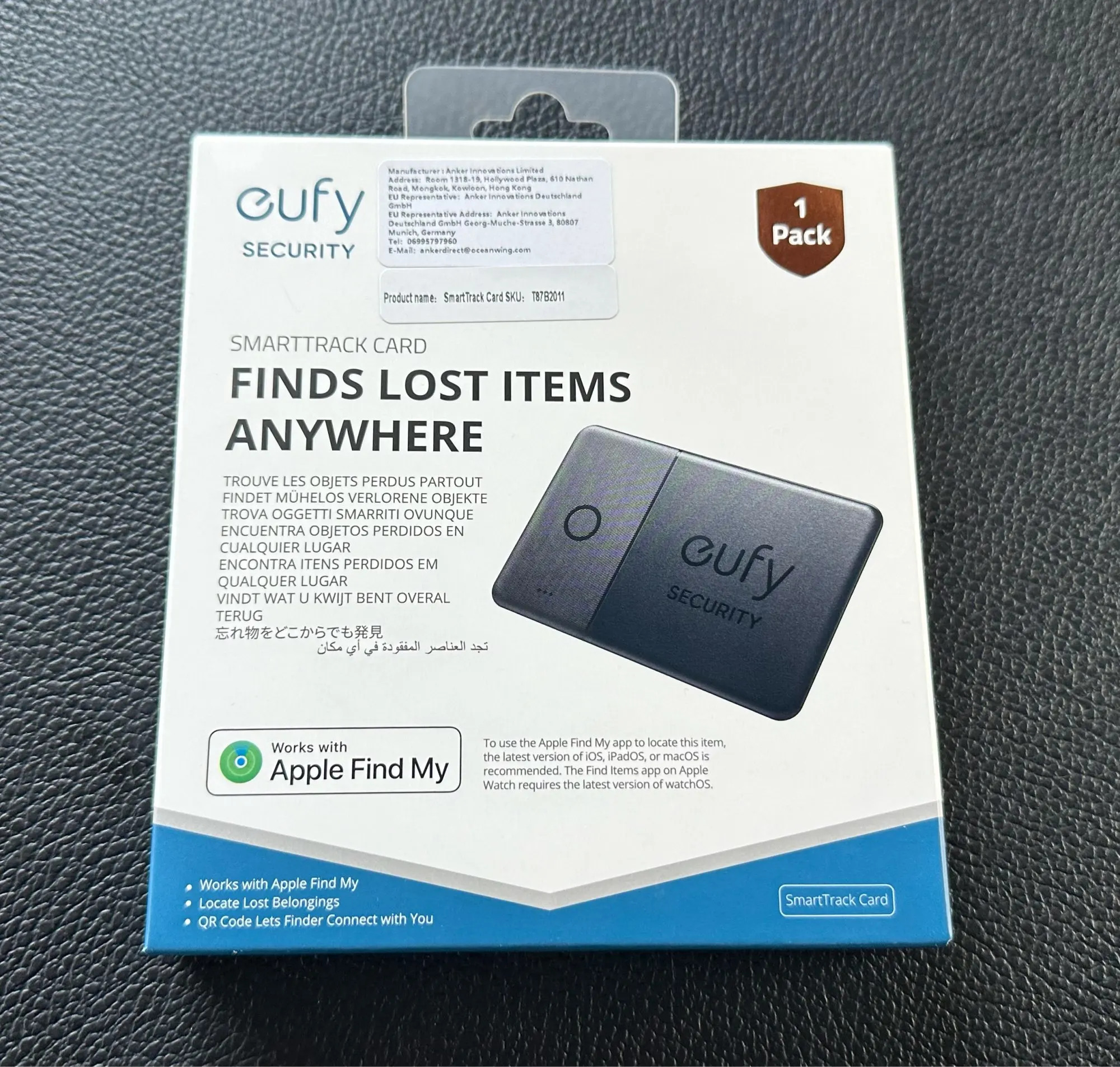 Карта поставляется в конверте с воздушными пузырьками с хорошей подкладкой. Действительно профессиональная упаковка. Приложение Eufy не нужно для отслеживания (только для нажатия кнопки на карте, чтобы позвонить на телефон). Настройка карты с помощью fin My очень проста, все, что вам нужно сделать, это удерживать кнопку в течение 3 секунд и нажать кнопку add new device в приложении fide My. Толщина карты составляет всего 3/4 мм, размер кредитной карты. Единственным недостатком является то, что аккумулятор не заменяется, поэтому, когда он разрядился, его нужно выбросить.