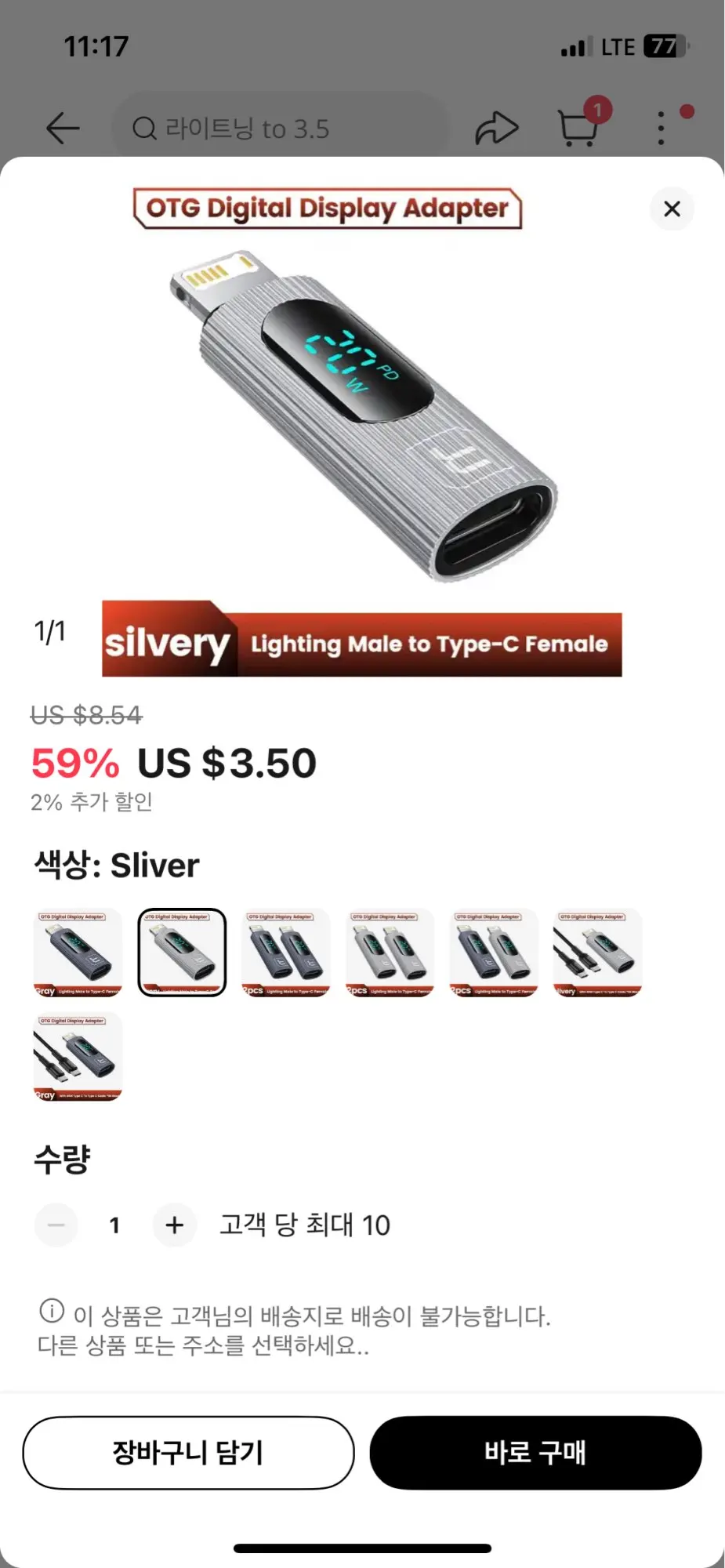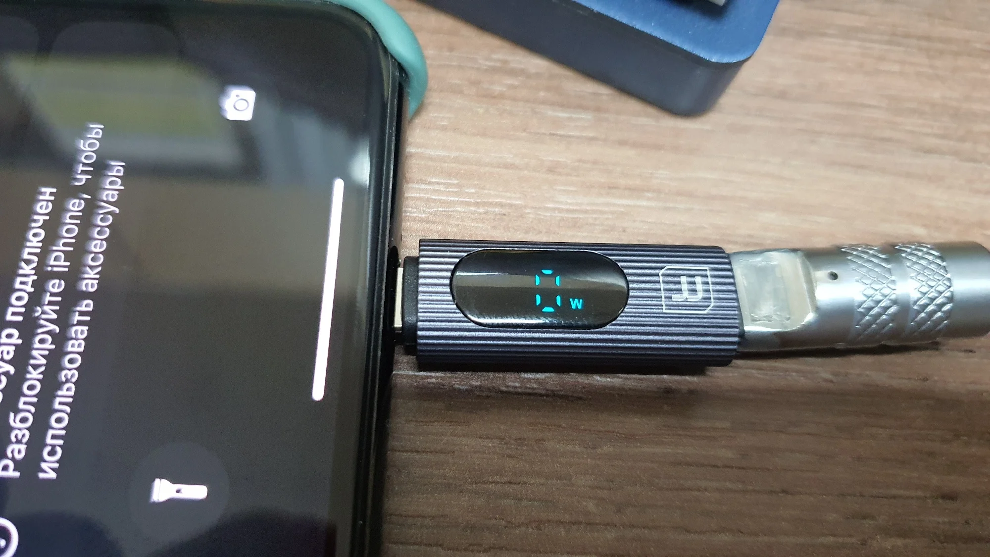 Переходник type-C (мама) lightning (папа) с цифровым экранчиком