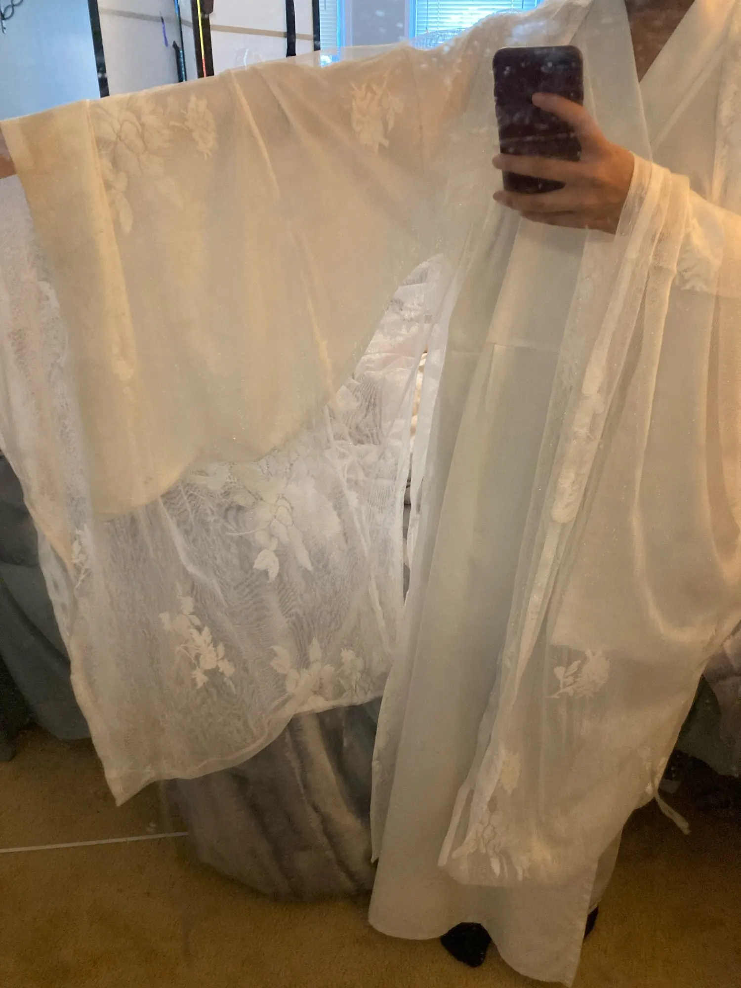 Это определенно стоит своей цены. Сетчатая ткань и Цветочная вышивка, как и ожидалось, отлично сочетается с hanfu, который у меня уже есть. Кроме того, рукава очень длинные и изящные. Продавец также очень хорошо общался.