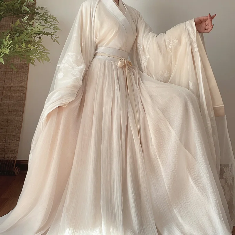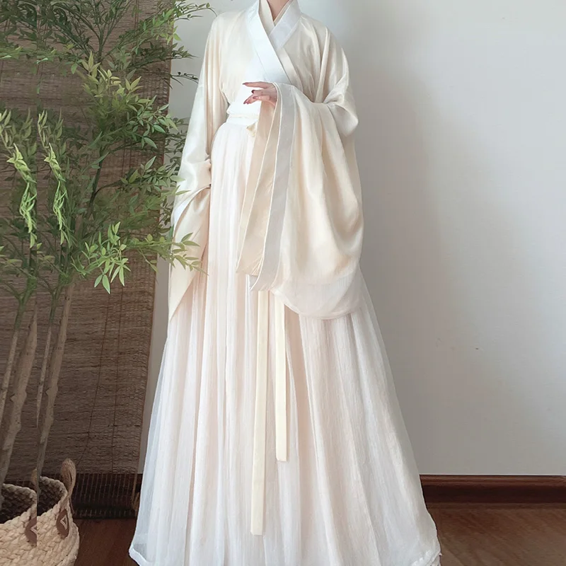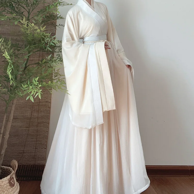Белое длинное платье ханьфу, костюм для народных танцев, традиционный китайский национальный стиль, Ранняя принцесса, сценические наряды
