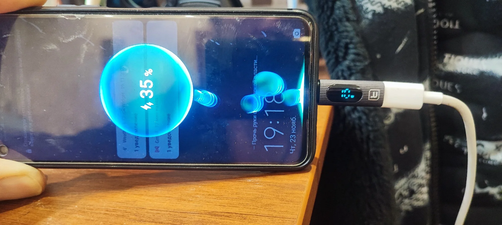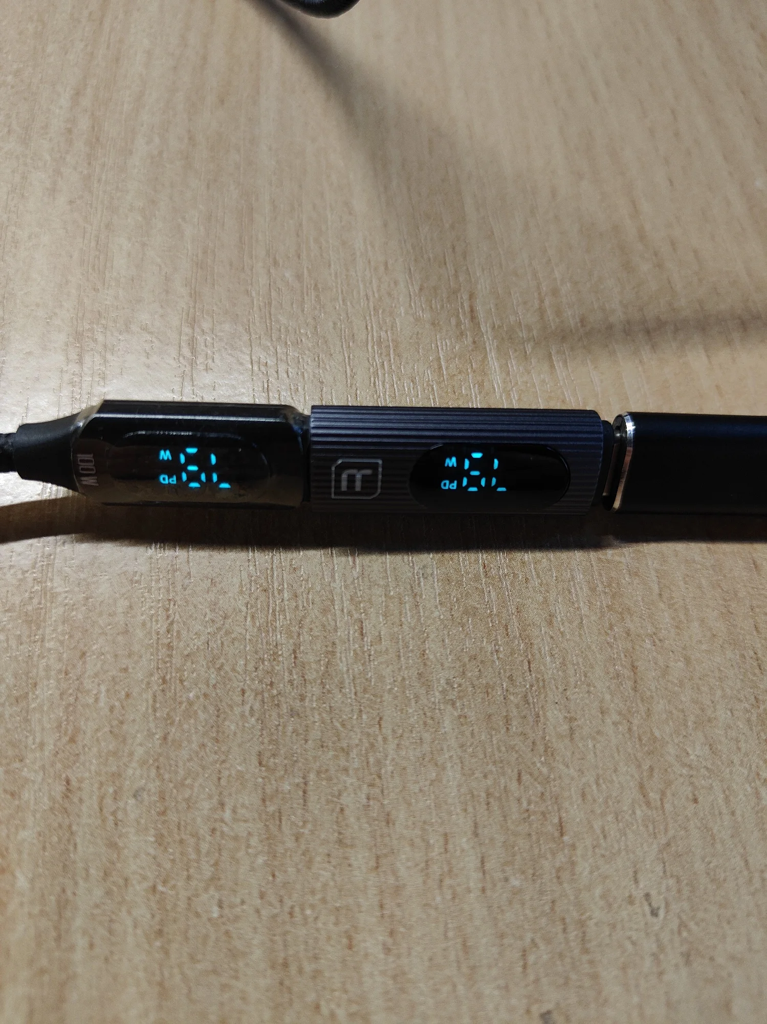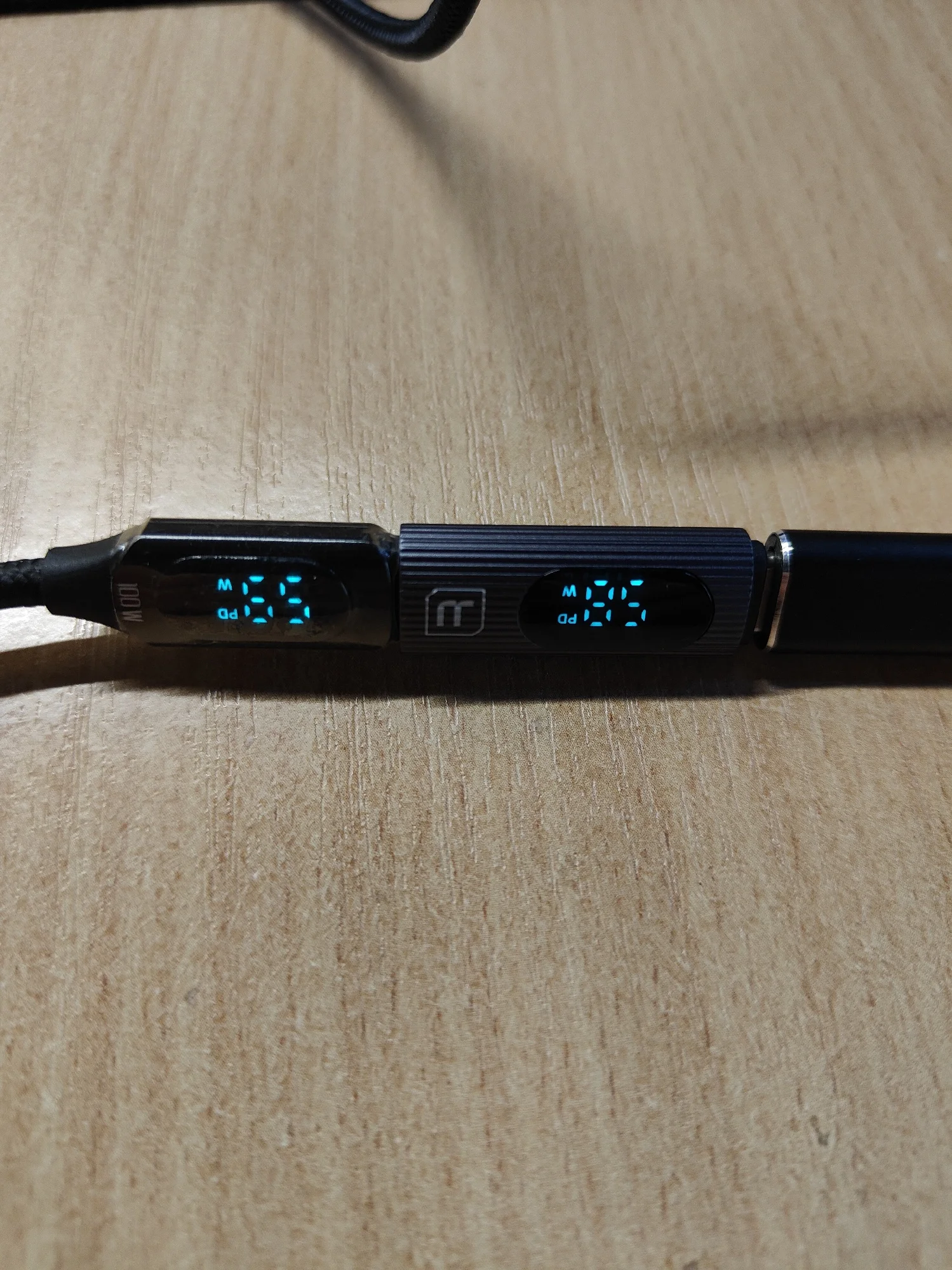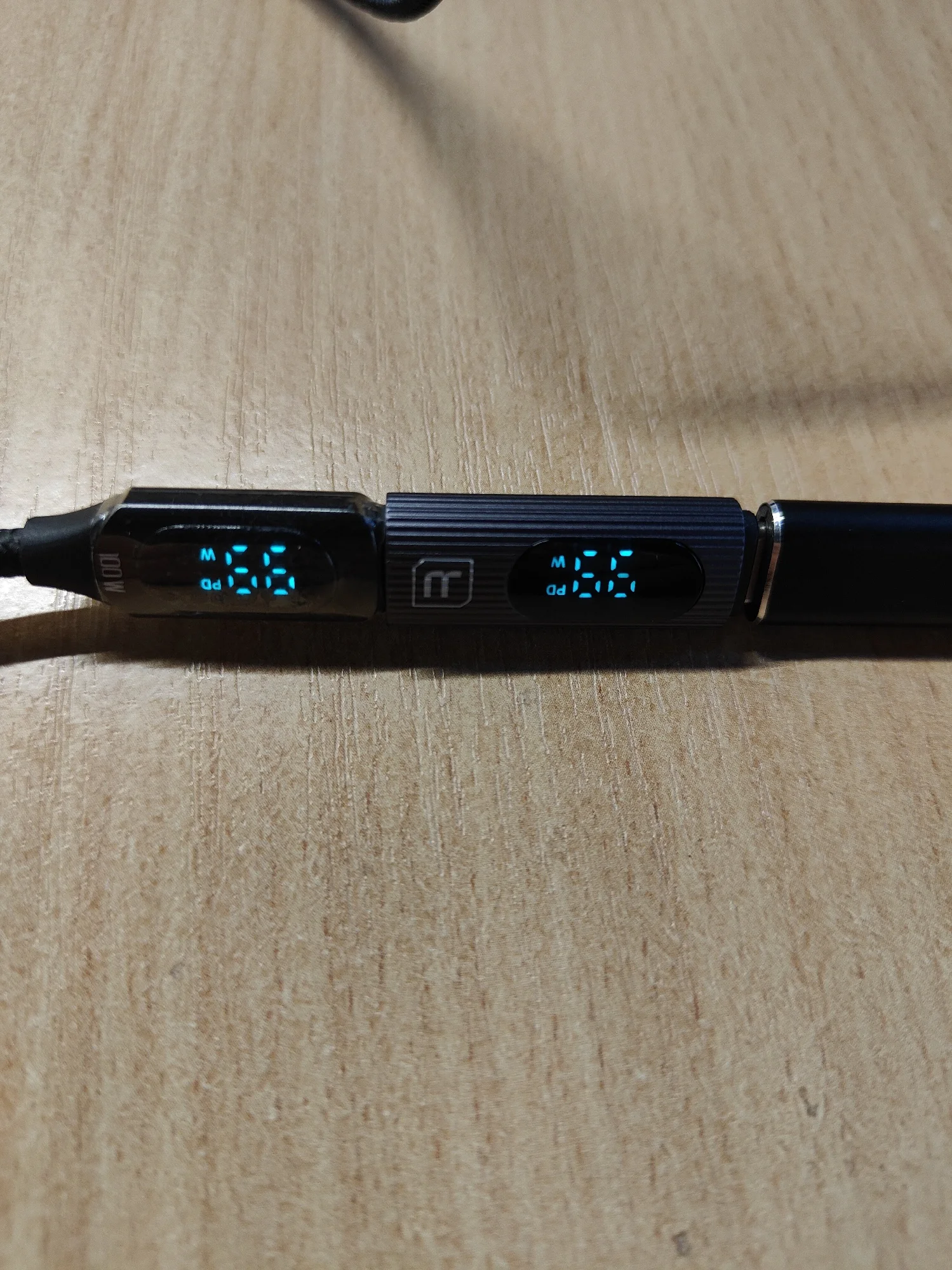 Штука интересная. Взял из любопытства для сравнения, есть шнурок с таким индикатором. При быстрой зарядке honor 20 pro - доходит до 12 ватт и падает в ошибку E1. При зарядке xiaomi 11t pro штатной зарядкой 120 ватт - с разряженным телефоном показало максимум 72 ватта.