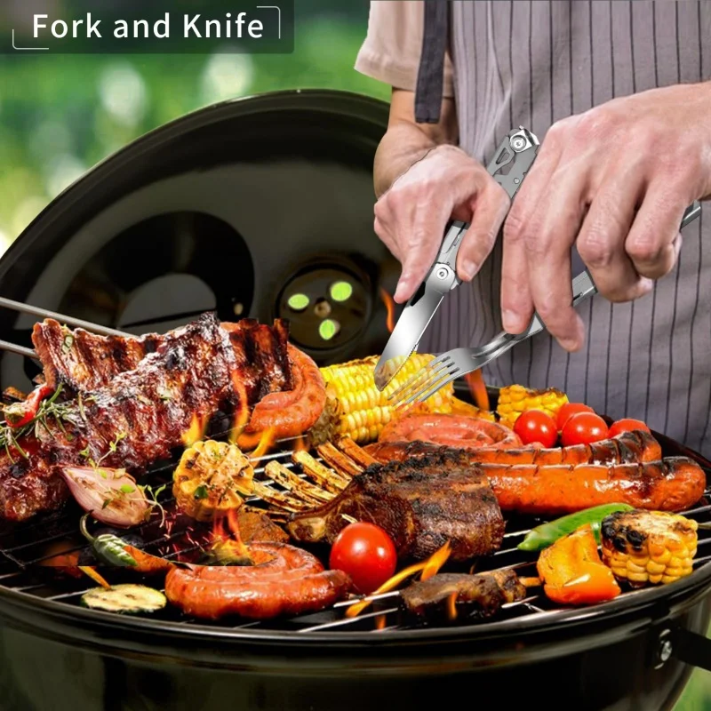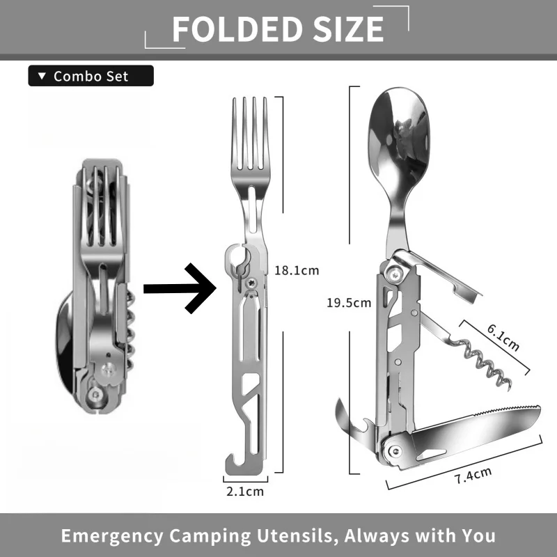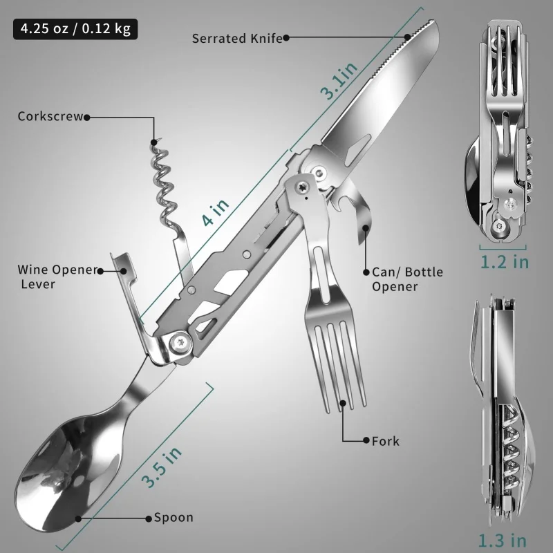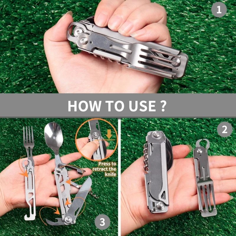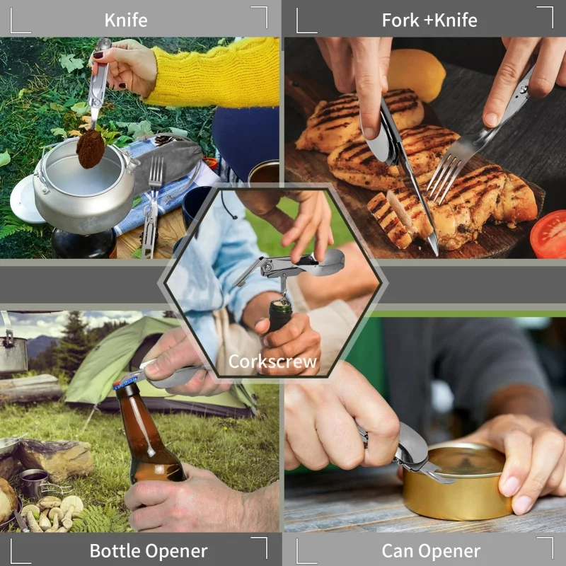 Столовые приборы 5 в 1 для кемпинга, Мультитул, портативная ложка, вилка, нож и открывалка для бутылок, комбинированный набор, съемные столовые приборы для улицы