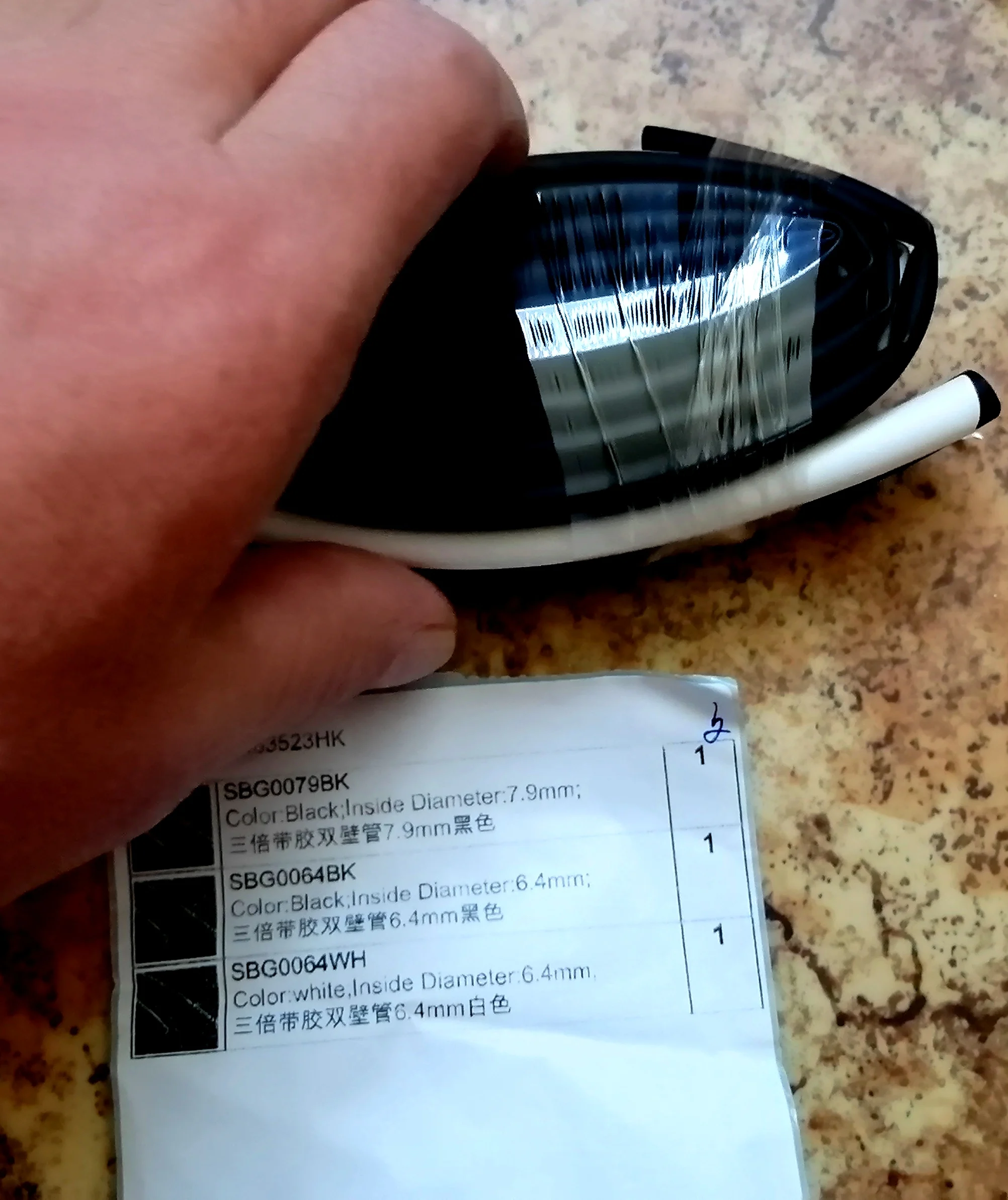 Термоусадочная трубка с двойными стенками Color: Black Inside Diameter: 6.4mm , 1 м, коэффициент 3:1 была отправлена в сборной посылке от продавца. Есть сопроводительная спецификация. Пришло в нормальном состоянии. Описанию, в основном соответствует, коэффициент усадки несколько завышен, но для этой цены нормально. Магазин рекомендую, товар хорошего качества.Aleksandr Nikolaevich D. 29 июля 2022
