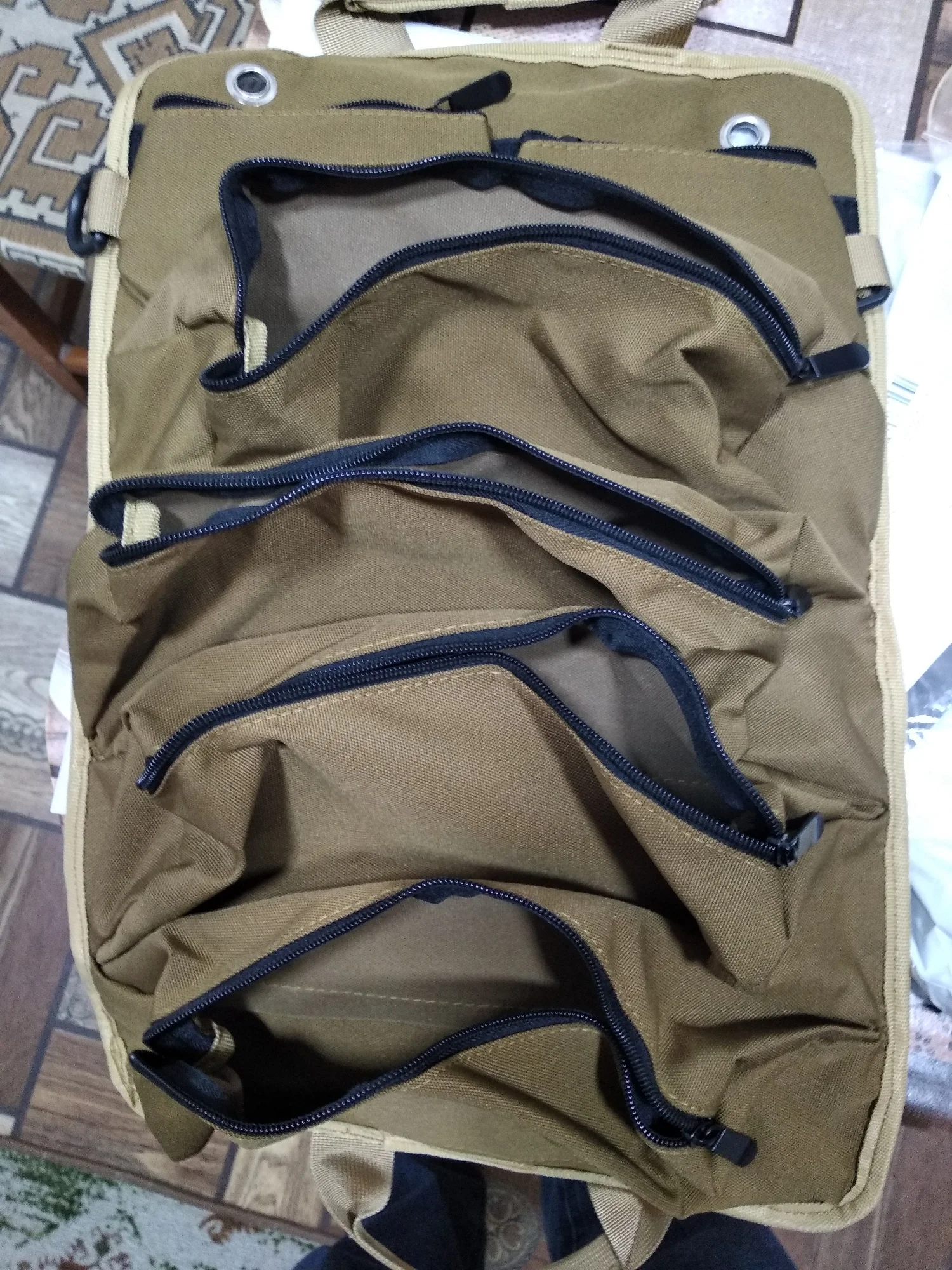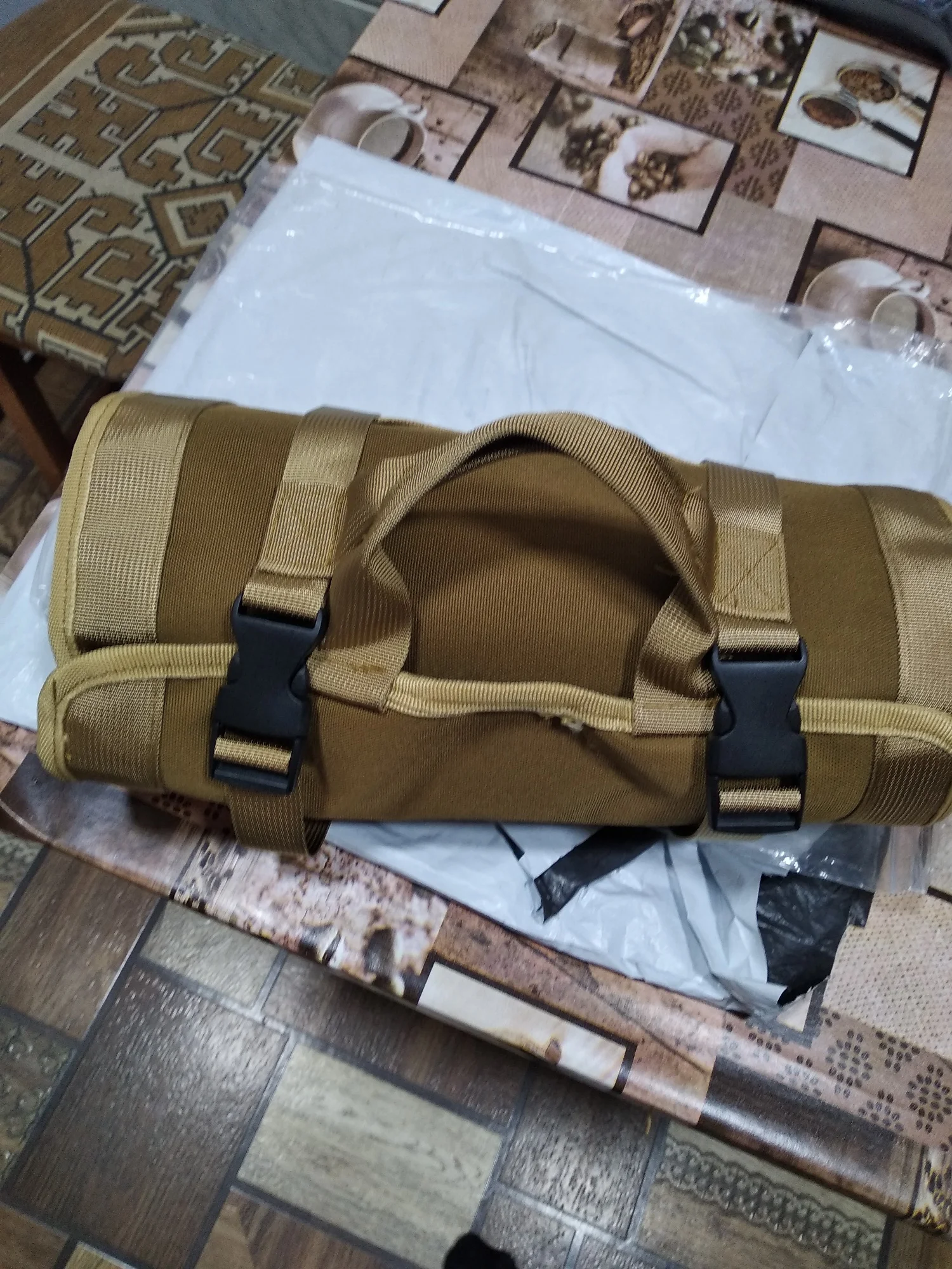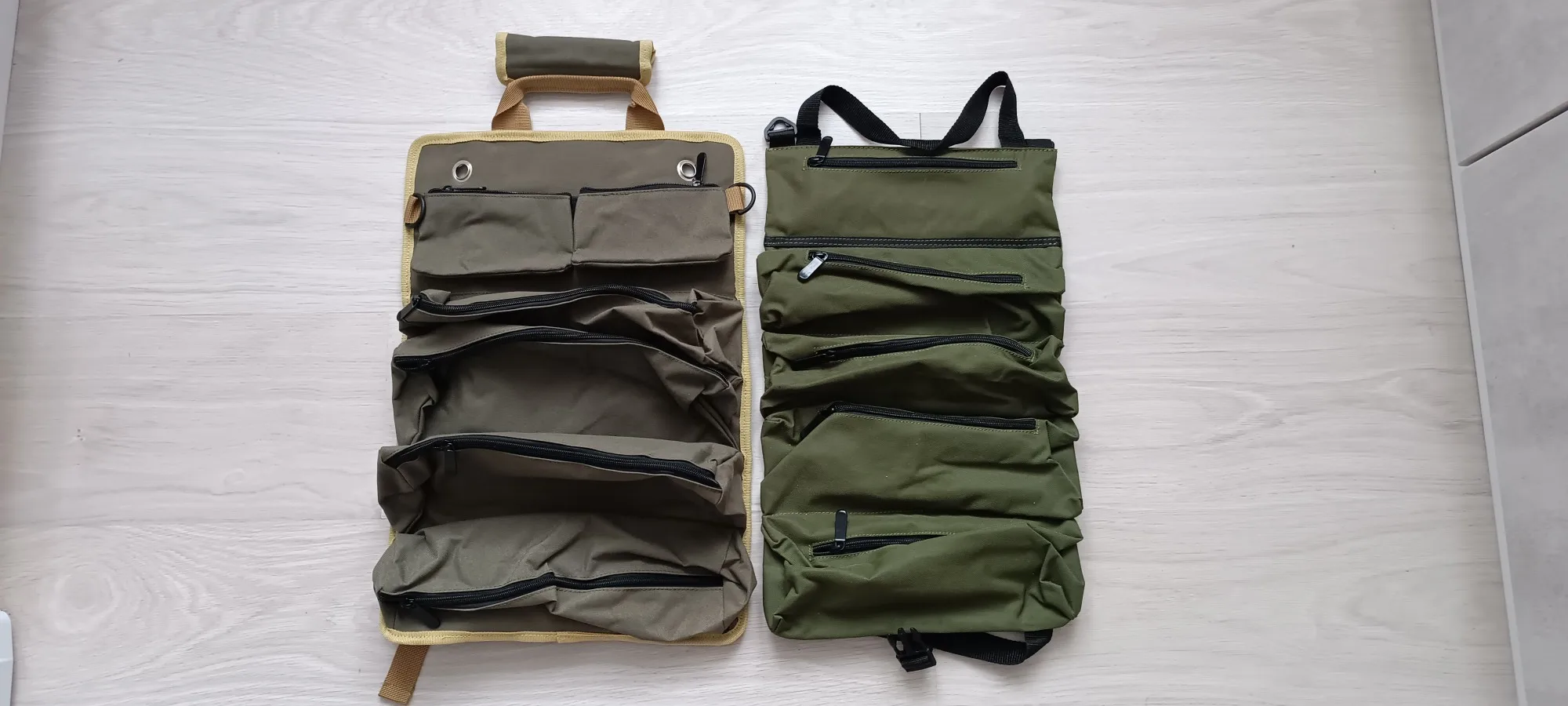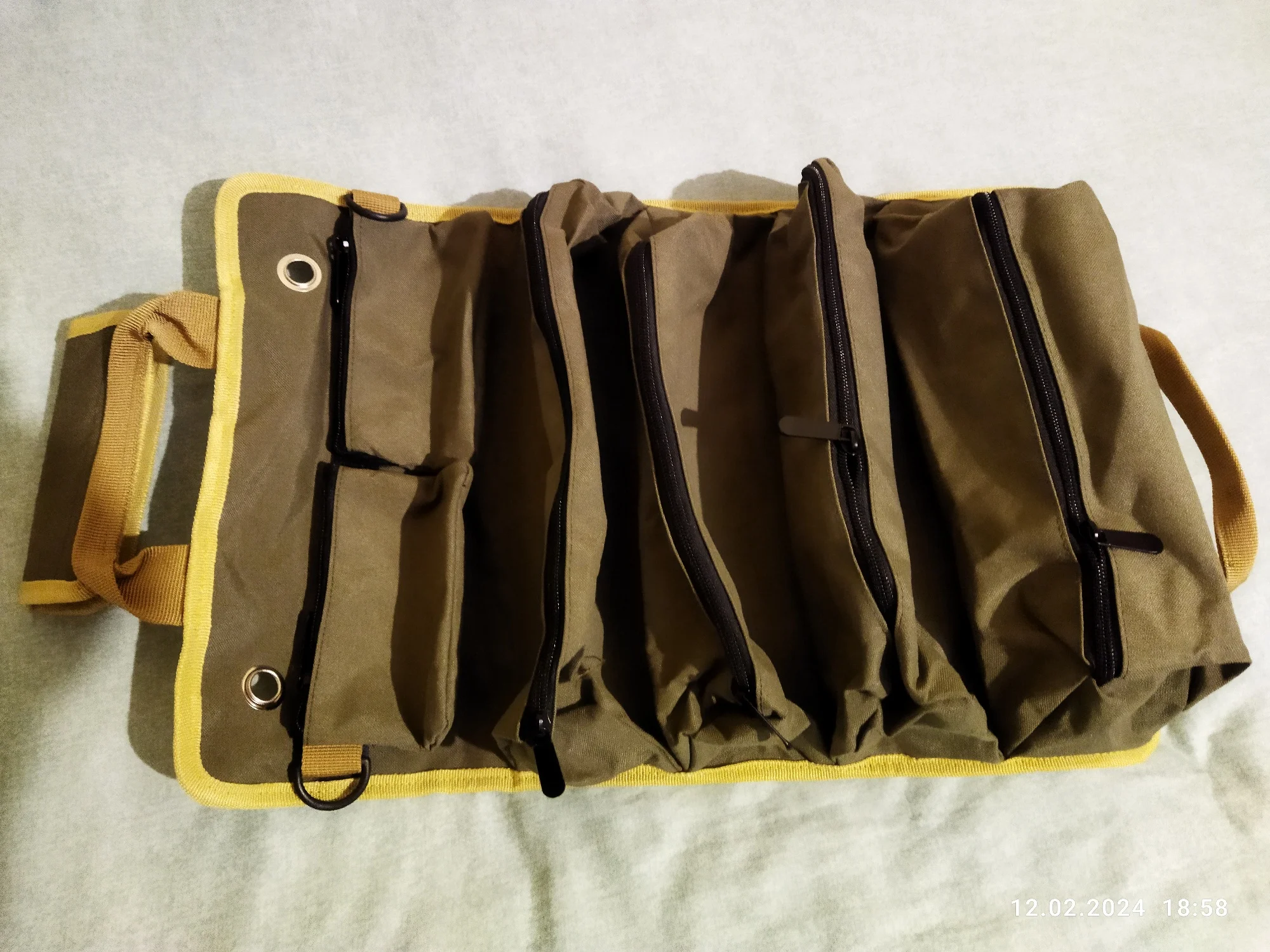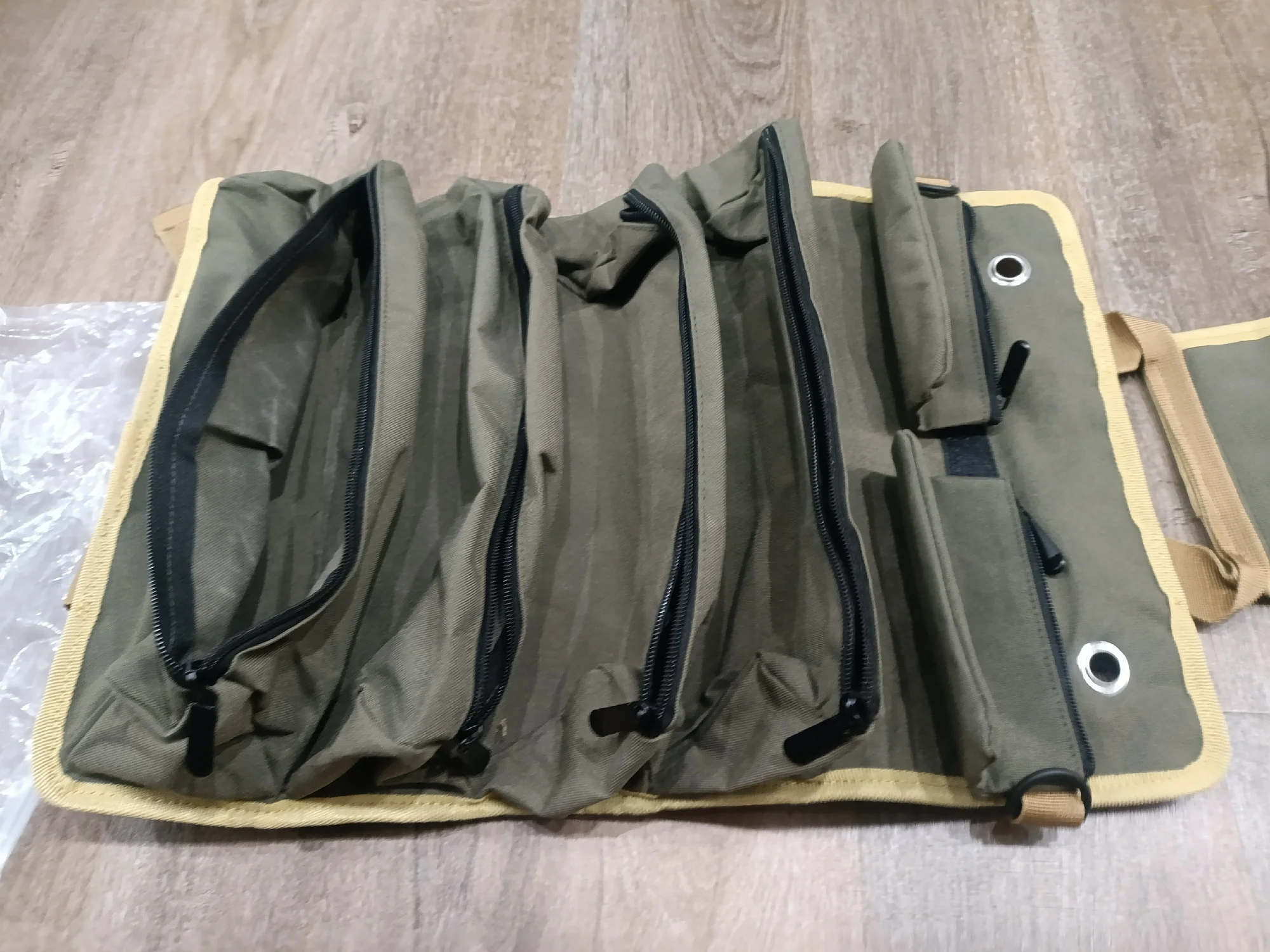 Классный рулон-сумка. Качество понравилось. Есть две маленькие сумочки на велкро, четыре застегивающихся отделения. Особо понравилась возможность подвесить на стол.