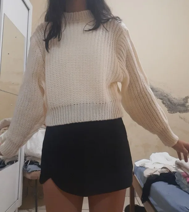 Посылка пришла очень вовремя, свитер идентичен изображению, ткань плотная и закрытая, в холодную погоду приседает.