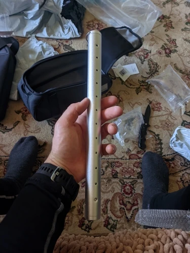 Быстрая доставка. Хорошо упаковывается в коробку с пузырчатой пленкой в пакете со скрепленными лентами. Эта вещь пришла ко мне без царапин. Как в описании. Я бы не хотел сложить это вместе в пьянке. Это немного запутано, но если вы получите детали вместе в правильном заказе, это не слишком плохо. Сначала ноги, затем стержни в крошечных отверстиях. Ноги будут держать эту половину вверх. Затем поместите длинный винт, как тот, через другую сторону. Выровняйте все сумасшедшие металлические стержни и прикрутите их. Bam готово! Мне нравится. Затем вы должны тщательно получить все части обратно в трубку, имейте в виду, что ноги короткие, так что они должны складывать или они не подходят. Привинтите крышку, и это трубка шума. Я рад попробовать это в дикой природе. Я уверен, что он будет очень грязным и трудно положить обратно в трубку. Вызов принимается! Отличное общение с продавцом. Очень настоятельно рекомендуется для обоих.