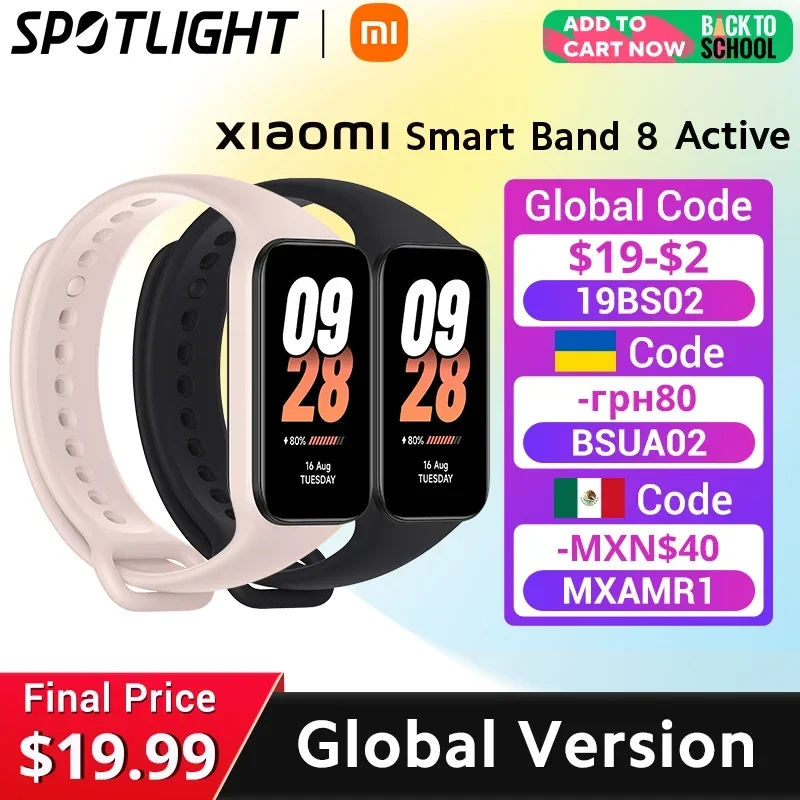[Глобальная версия] Xiaomi Smart Band 8 active с дисплеем 1,47 дюйма, водонепроницаемый пульсометр 5 АТМ, 50 + спортивных режимов