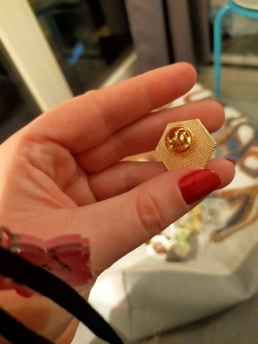 Соответствует описанию. Хорошее дополнение к подарку для друга - настольщика) застёжка-пин пока себя чувствует хорошо, но подруга все равно для верности сажает такие значки на клей, чтобы точно не отвалились