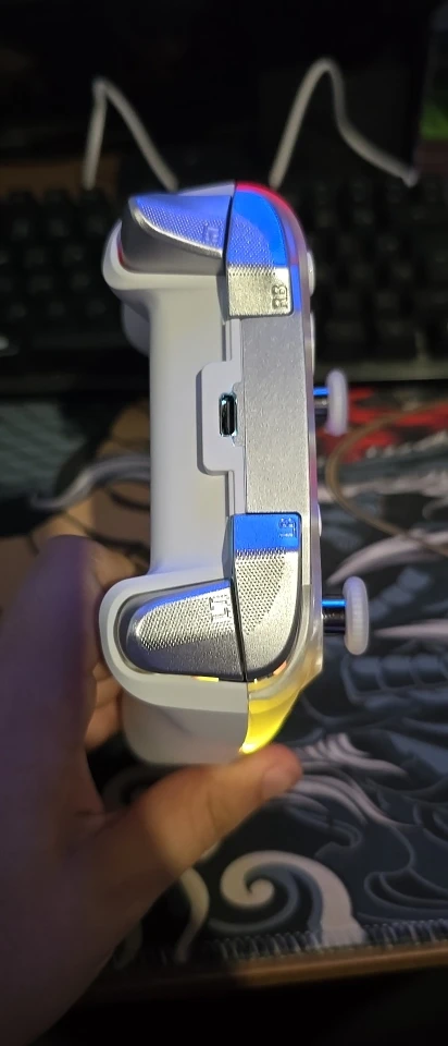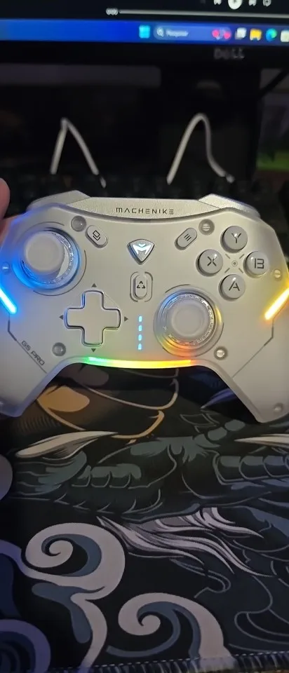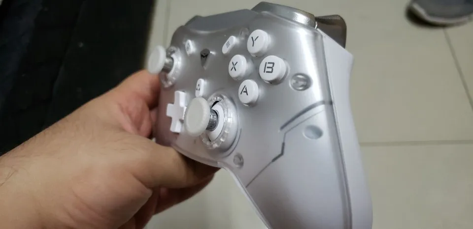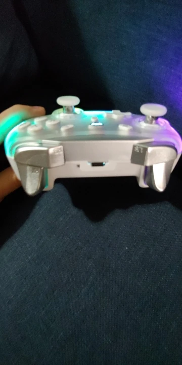 Отличный контроллер за такую цену! Триггеры сложнее и глубже, напоминают триггеры xbox 360, поэтому они хороши для гоночных игр. Мне понравились огни RGB и контроль над ними, вы можете изменить цвет, яркость, а также режим (например, режим дыхания) Контроллер также показывает уровень заряда батареи, что действительно хорошо, все контроллеры должны иметь его. Затем кнопки возврата, их немного сложно нажимать, но для меня это хороший момент, не пропустите щелчок, удерживая контроллер! Кнопки для лица... Хорошо, но странно... Возможно, мне нужно привыкнуть к ним, но они смешали мембрану с механической кнопкой, поэтому она имеет Тактический звук, но также имеет более длительный ход и смутное ощущение при нажатии кнопок. Про долговечность не знаю, покажет только время, но выглядит премиально! Дизайн контроллера красивый, но поскольку у меня белый, мне не понравились серые детали, поэтому я просто отшлифовали его, чтобы получить полностью белый контроллер В целом отличный контроллер!