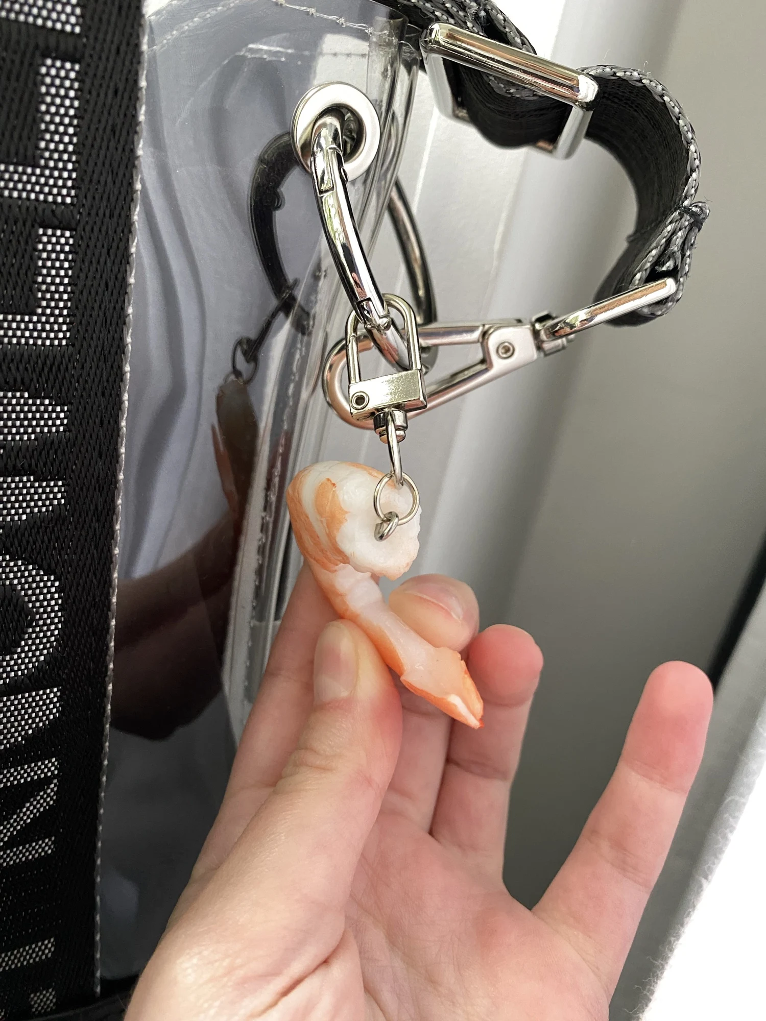 Брелок для ключей из ПВХ с имитацией креветки, мяса, креативный брелок для женской сумки, подвеска, новинка, забавная сцена, украшение, искусственный подарок
