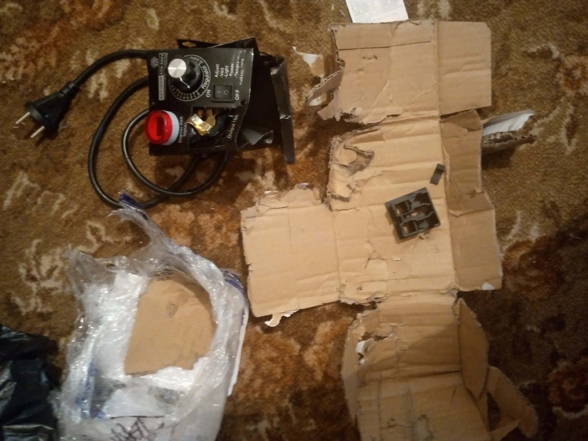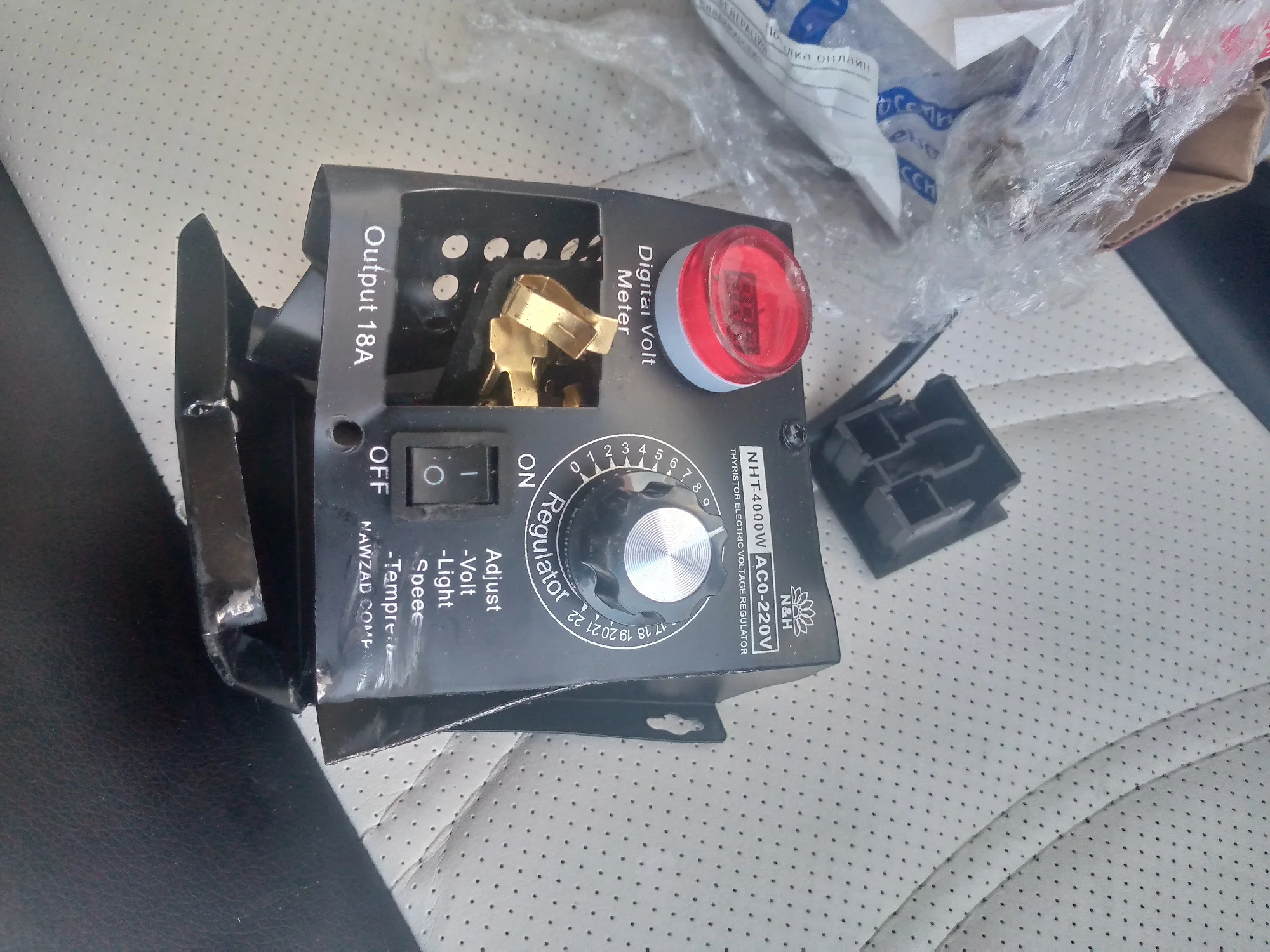 Всё работает, упаковка плохая коробка помята. Согнули уголок где отверстия под крепление. Хорошо что это металл пластмассу сломали бы. Товар рекомендую. Пробовал подключил фен регулировка начинается с 10, всё работает. Доставка до квартире.Юрий К. 21 октября 2021