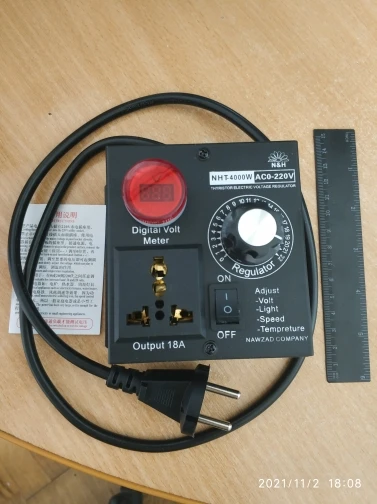 Медленно запрягали, но быстро доехали. По России вообще за два дня от таможни до двери курьером Почты России, первый раз такое. Сам прибор без повреждений, если подключить в розетку работает как вольтметр, на циферблате показывает Вольты, кабель около 50 см, закрытое исполнение. Опробовал на настенном вентиляторе, все работает, обороты регулируются, на циферблате отображает только напряжение сети. Единственное, что заметил при подключении вентилятора, на нем начинает гудеть электродвигатель как под нагрузкой, без регулятора не гудит. Для моих нужд подходит для принудительной вентиляции в гараже, все устраивает.Aleksandr K. 2 ноября 2021