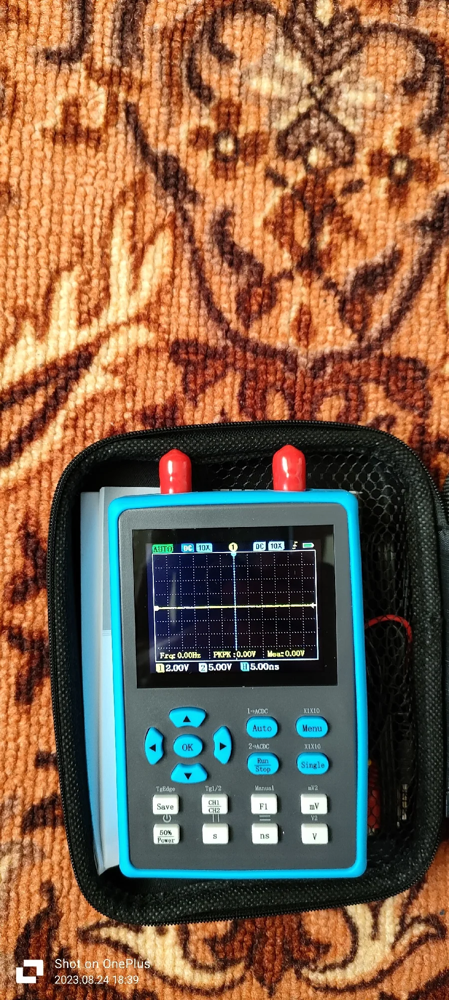 Всё отлично пришло, кроме парочки моментов: 1) Не было инструкции в комплекте. Но она на английском, поэтому всё равно мне не нужна. Но проверяйте комплектность внимательнее! 2) Комплектная отвёртка сломалась почти сразу. Но эти минусы несущественны, поэтому оценку не снижаю. Но продавец: задумайся! А так в целом осциллограф работает как надо, всё показывает, сомнений в оригинальности не возникает! Я доволен! Прошивка версии 1.3.0C с режимом RTAuto и ещё одним скрытым очень прикольным режимом, который вызывается долгим нажатием на кнопку s, см. фото 3-5. Доставка была Экспресс со склада в Москве через Почту России, которая задержала заказ на 3 дня. Ещё при отправке продавец указал вес посылки в 2+ килограмма, а на почту пришло 600+ грамм, пришлось понервничать и заставить сотрудников почты вскрывать при мне. Но в посылке было то, что надо. Продавец, может ты выслал мне подарков на 1.5 кг, а Почта их забрала? или всё-таки указание веса в 2+ кг было ошибкой?