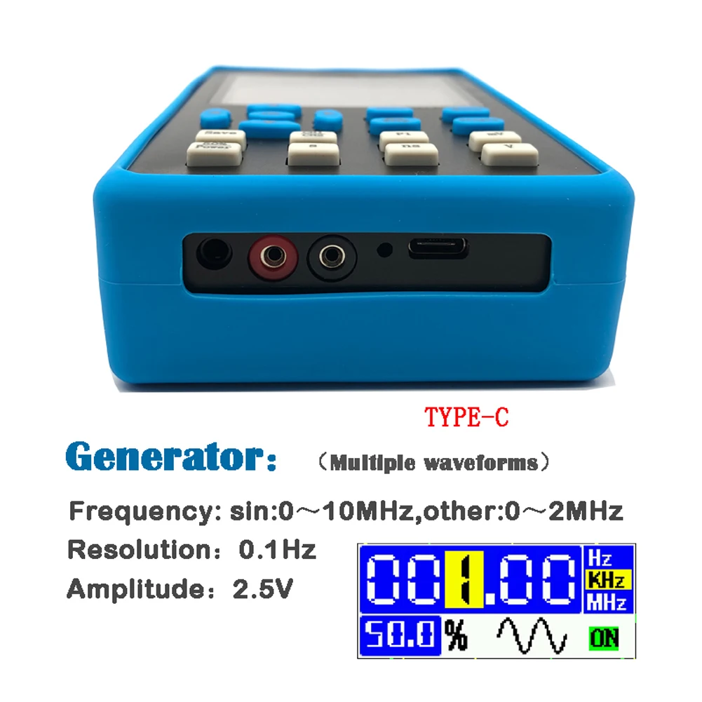 Нижняя часть осциллографа может выводить различные формы сигналов с амплитудой 2,5 V, такие как синусоидальные волны, прямоугольные волны, трехугольные волны, полуволны, синусоидальные волны, среди которых Диапазоны регулировки частоты синусоидальной волны составляют 0 ~ 10 МГц, Диапазоны частот других форм сигналов составляют 0 ~ 2 МГц, И точность до 0,1 Гц. Широко используются генераторы сигналов, такие как прямоугольные волны для калибровки нового зонда, управляющие трубки MOS и т. д., синусоидальные волны могут использоваться для проверки искажений звука и т. д.
