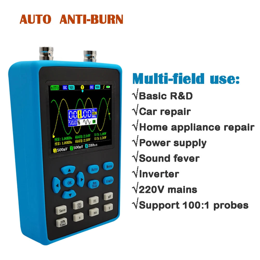 Этот осциллограф с полосой пропускания DSO2512G 120M с мощными функциями, такими как коллокация микросхем ARM и FPGA, также может выводить различные формы сигналов амплитуды 2,5 V, такие как синусоидальные волны, полуволны и так далее. Давай и попробуй, он тебя не поддаст.