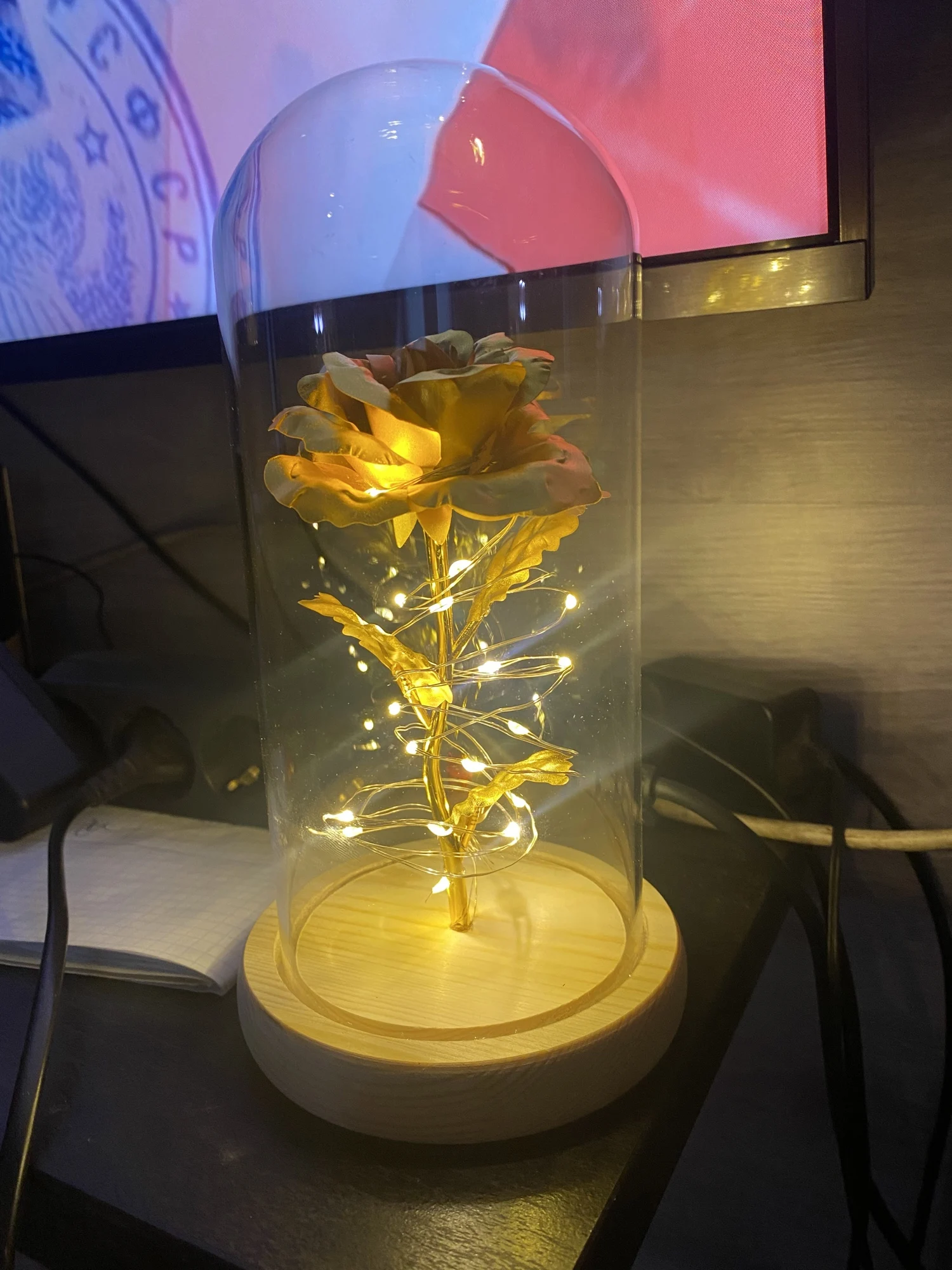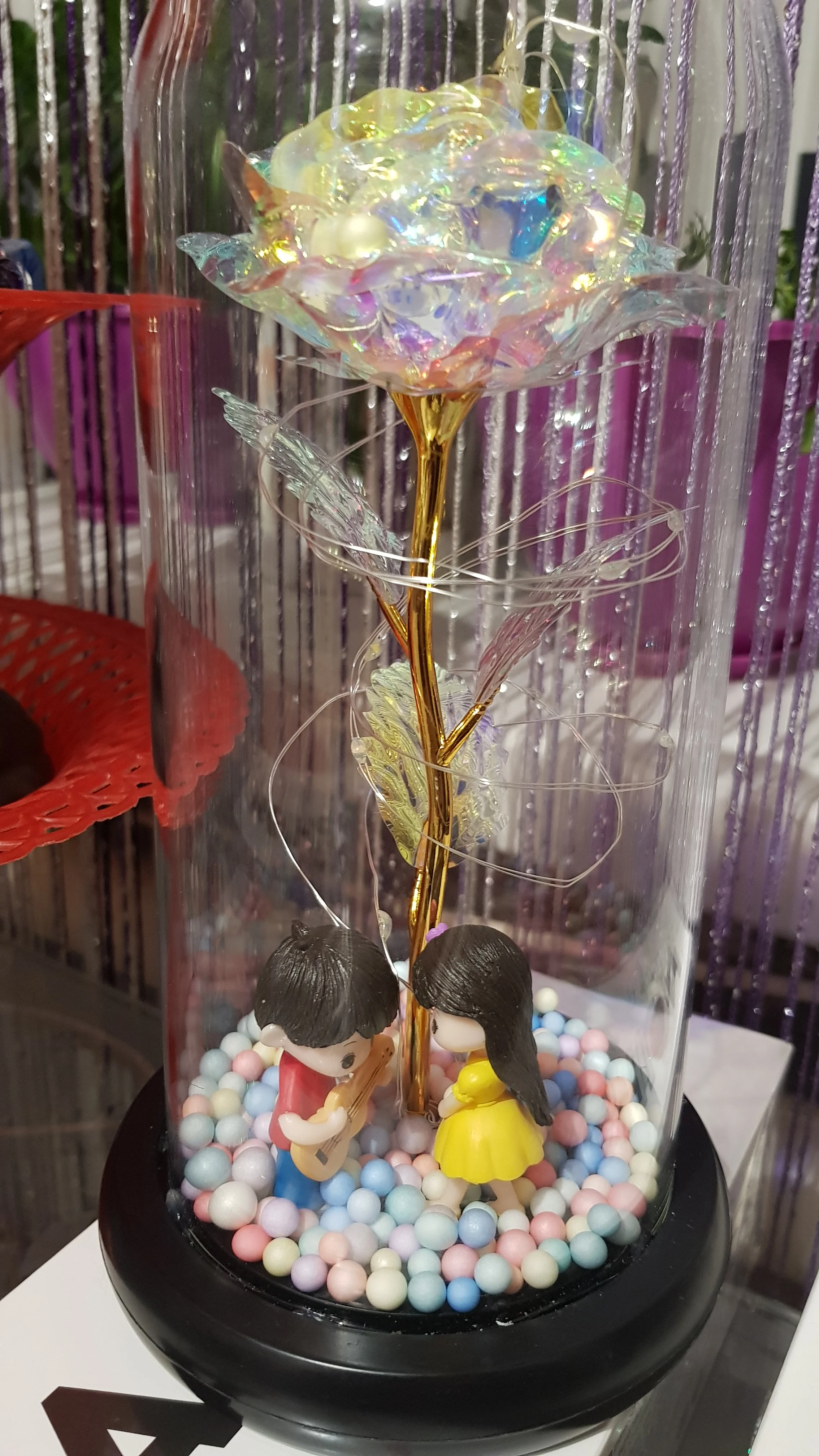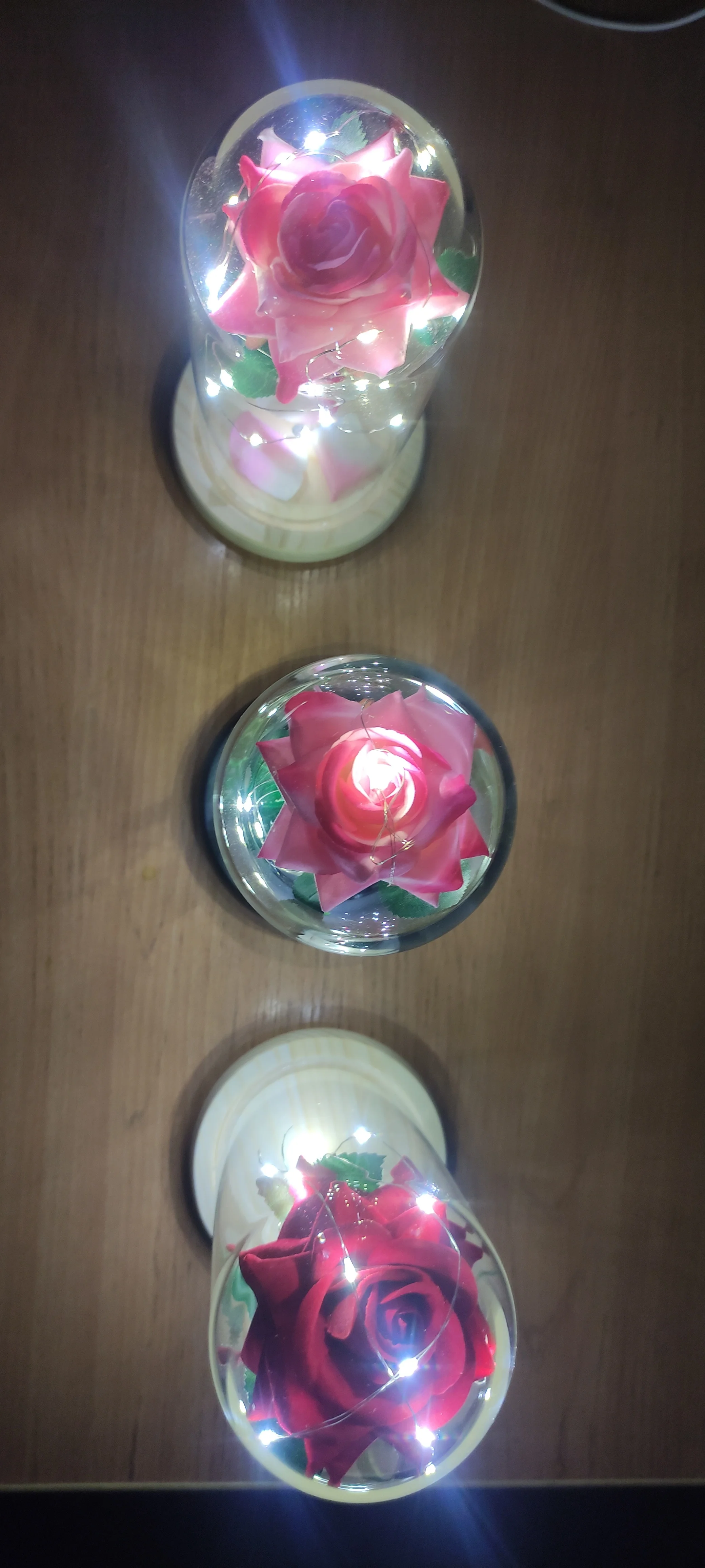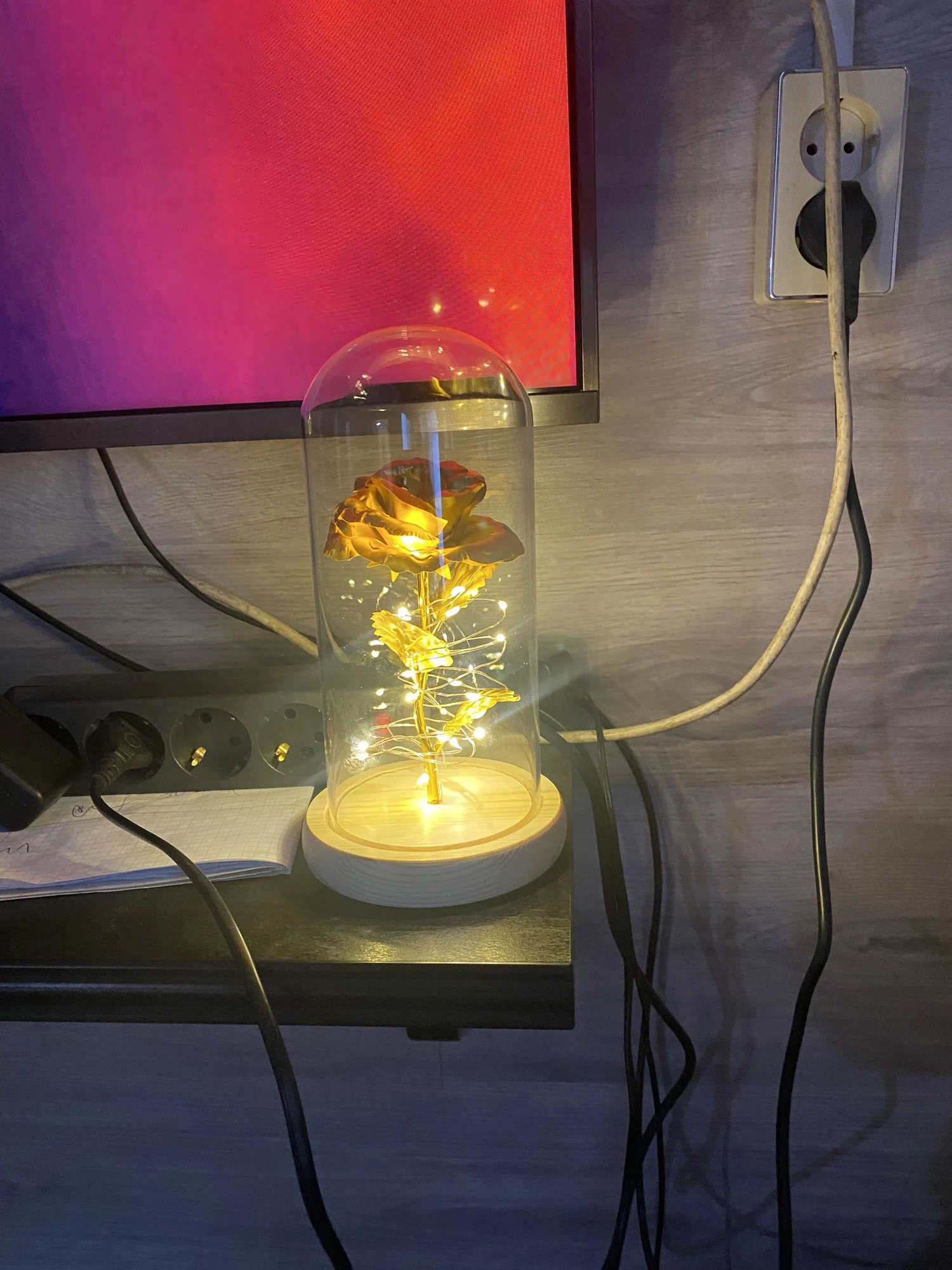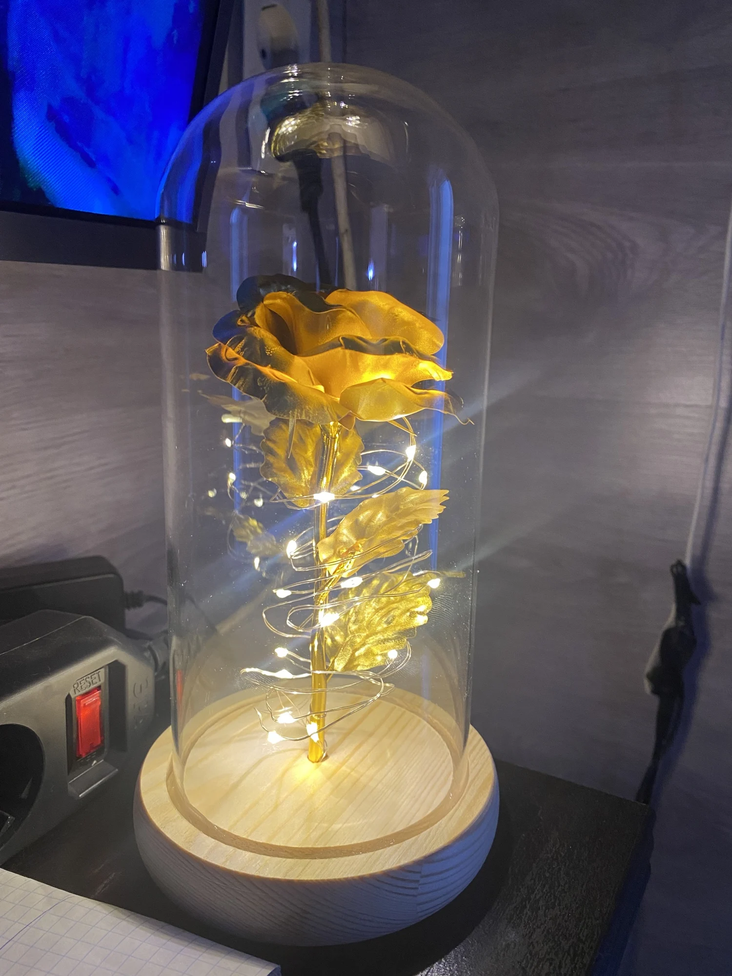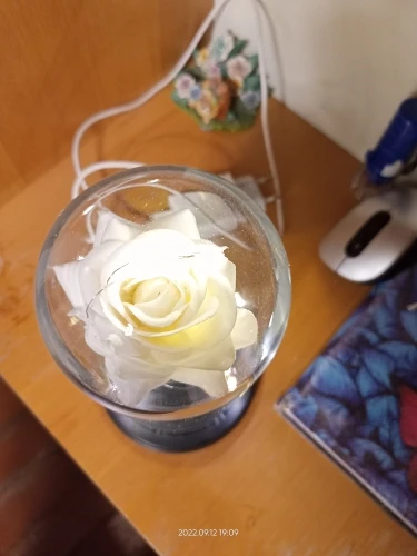 Колба красивая. Пенопласт правда невозможно убрать из лепестков цветка, но пусть валяется фиг с ним. Батареек в комплекте нет. Потребуются три "мизинчиковых" (AAA) Гирлянда внутри колбы просто светится, не мигает, но и так нормально. Остальное можно посмотреть на фото. При доставке ничего не повредили. отправили быстро. упакована была в пенопластовую форму и сверху пузырьковая пленка и пакет. Более чем надежно. Продавец хороший.Pavel Vladimirovich C. 6 января 2022