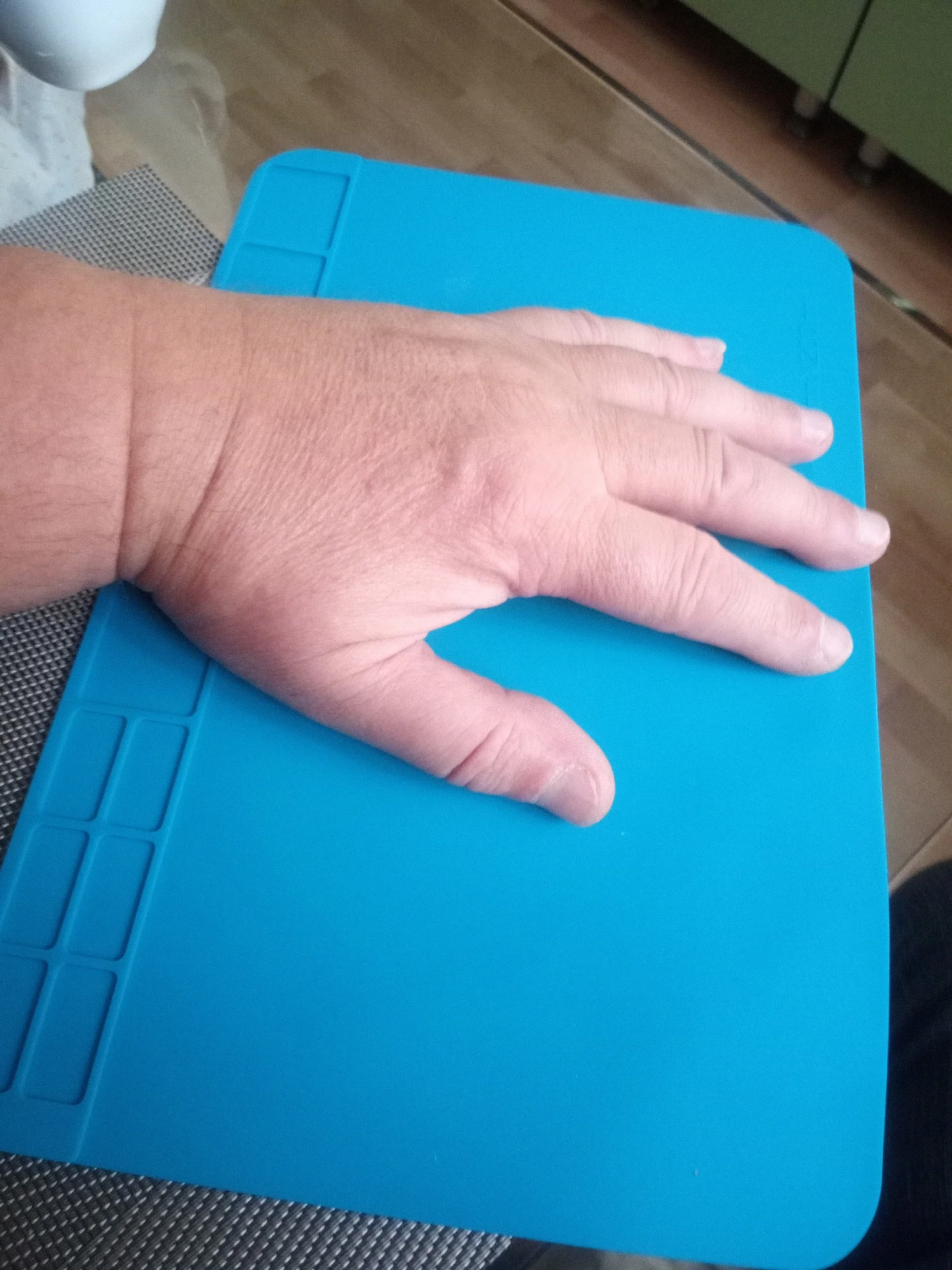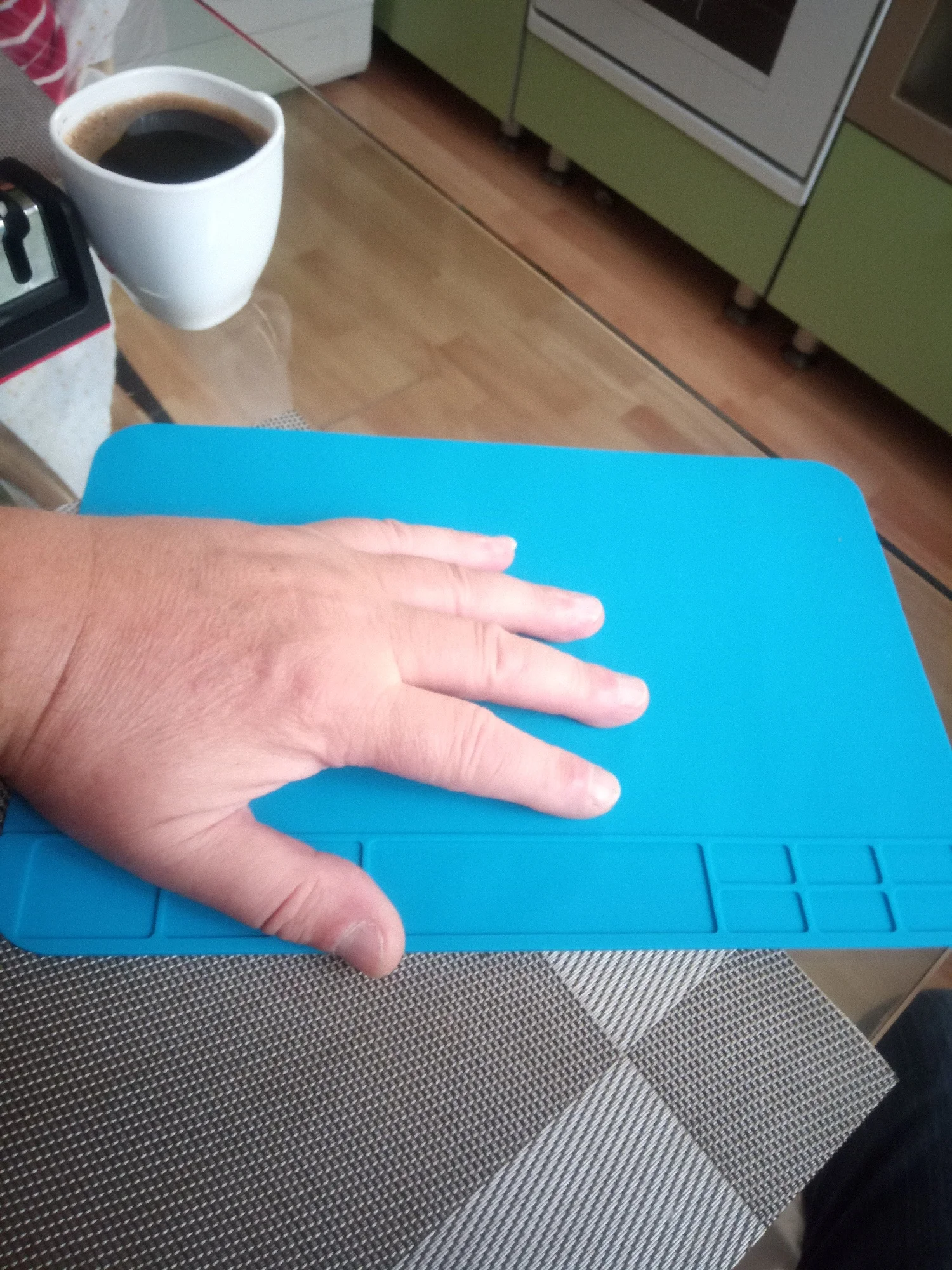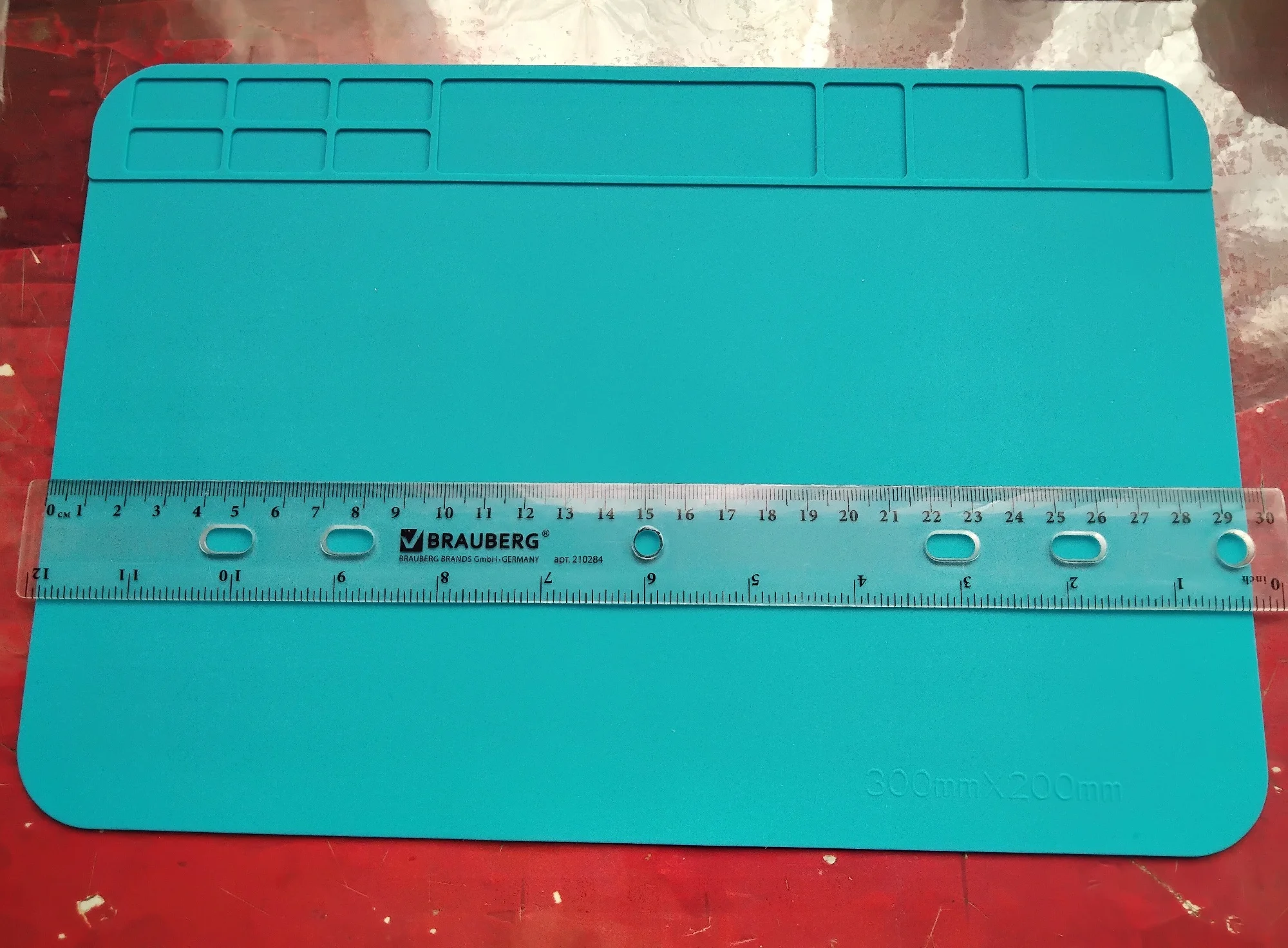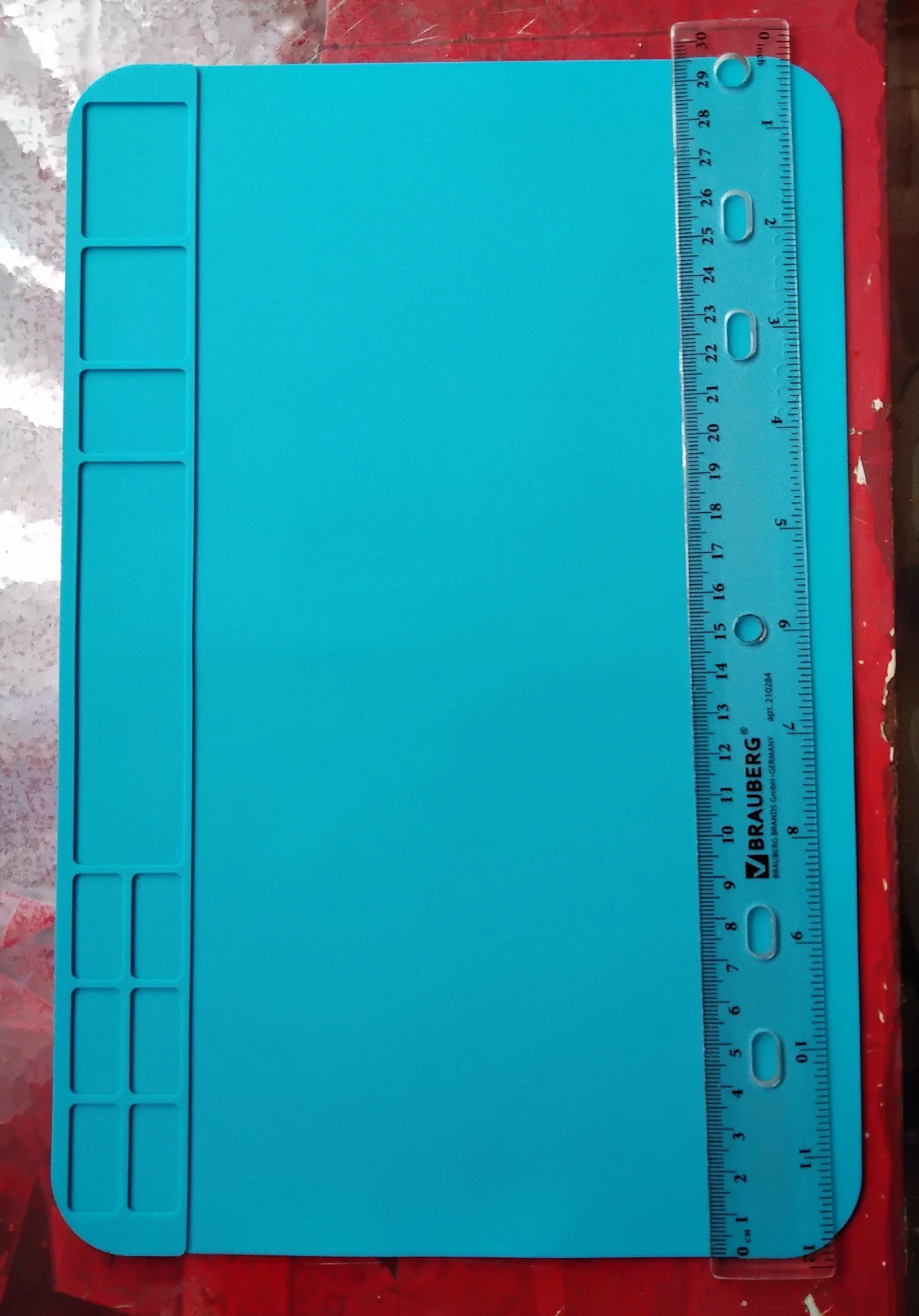 Давно себе хотел коврик для пайки и ремонта, нашел этот ковёр за 180₽ купил и не пожалел, пусть он и не такой большой, но мне хватает, он всяко толще, чем кухонные, силиконовые.