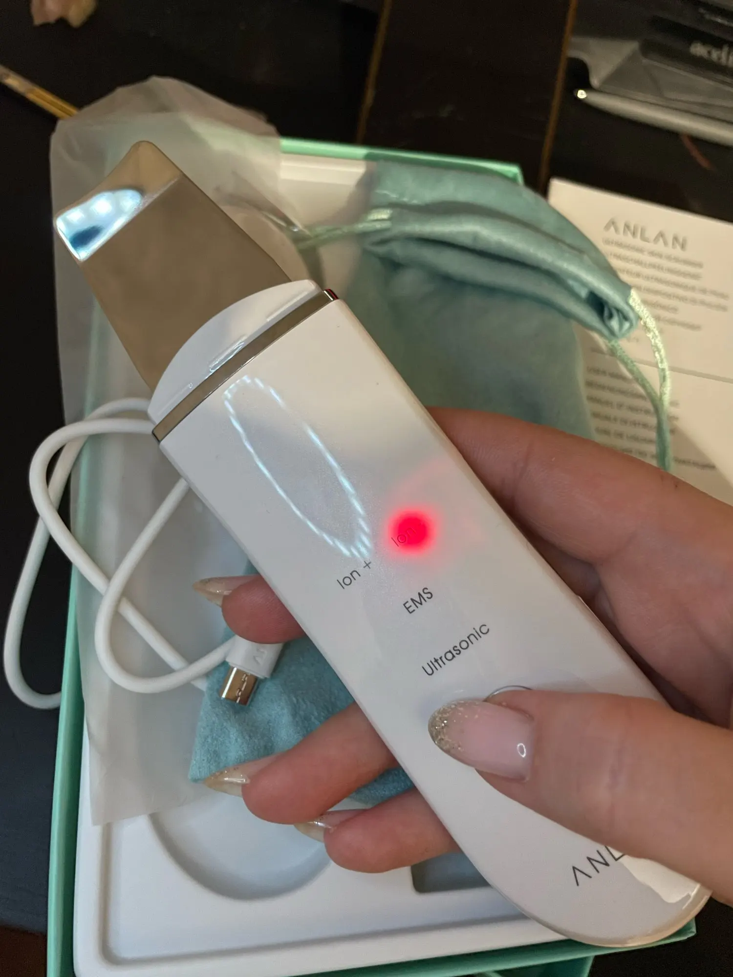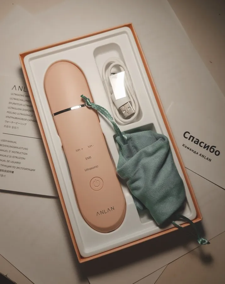 Ультразвуковой скрабер Доставка 5 дней до Мск. Упаковка в пупырчатый пакет, всё пришло целое, коробка не помялась. В набор входит зарядный кабель, мешок для хранения, инструкция на РУССКОМ языке!!! Пришёл заряженный. Выглядит презентабельно, можно на подарок. Применяем только на мокрую кожу. Понять, что жидкости достаточно поможет лёгкий туман. При использовании держимся за металлические дуги, чтобы не ударило током. Эффект меня очень порадовал, хорошо очищает верхний слой кожи. Не замена косметолога, но как домашний уход очень достойный. После использования на коже есть лёгкое покраснение, на утро оно проходит. Также после применения необходимо "закрыть поры" маской, так как они остаются расширенными. #anlan #happy_girl #анлан #скраб #skin #ультразвук #чистка #face