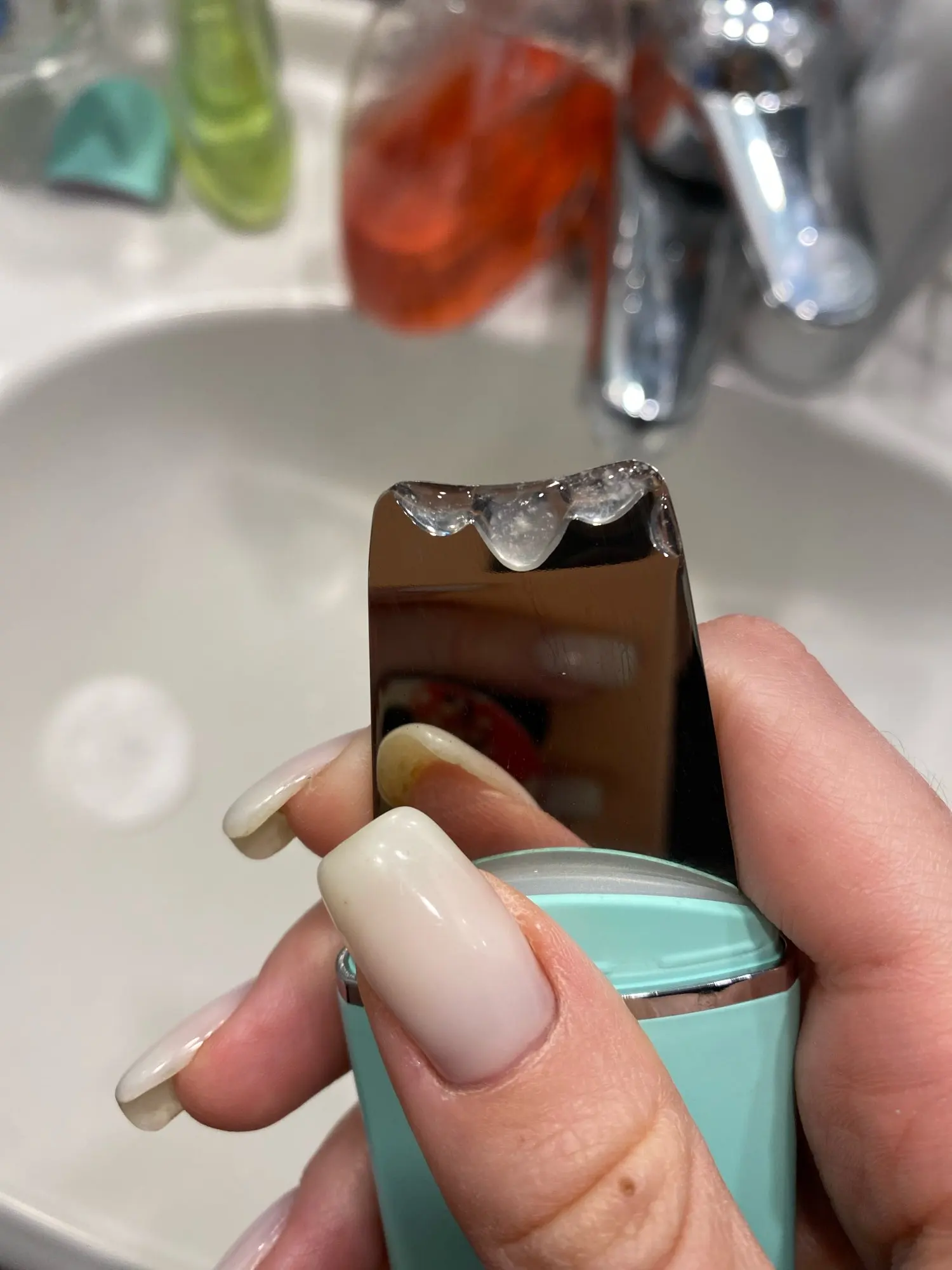 Сейчас будет восторженный отзыв. Я в шоке от первой чистки. У меня комбинированная кожа с комедонами. Сначала я распарила лицо на паром, но потом пожелела что сразу не купила гель для чистки лица, скорее всего я недостаточно распарила кожу, но все равно несмотря на это эффект получился ВАУ! Пробовала работать и на воду и на мицелярку, на вторую понравилось больше. Аппарат отлично справляется со своей задачей, фото прилагаю. Все внимательно советую прочитать перед применением, а после нанести пилинг и после него тоник для сужения пор. Я купила фирму Аравия. Легкое покалывание во время чистки, кожа ОБЯЗАТЕЛЬНО должна быть влажной, это очень важно! Угри сами выпрыгивают на лопатку, крупные и глубокие к сожалению нет( Доставка Мега быстрая в пятёрочку, упаковано все идеально. Я в восторге и надеюсь мой отзыв поможет кому нибудь)