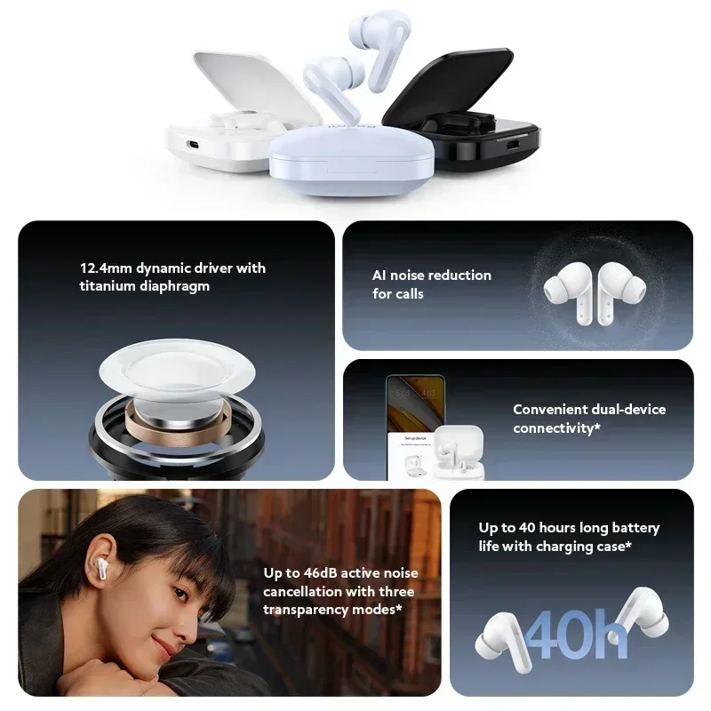 With a noise reduction depth of up to 46dB*,Redmi Buds 5 can effectively reduce