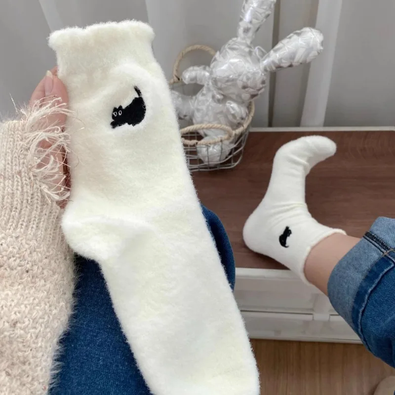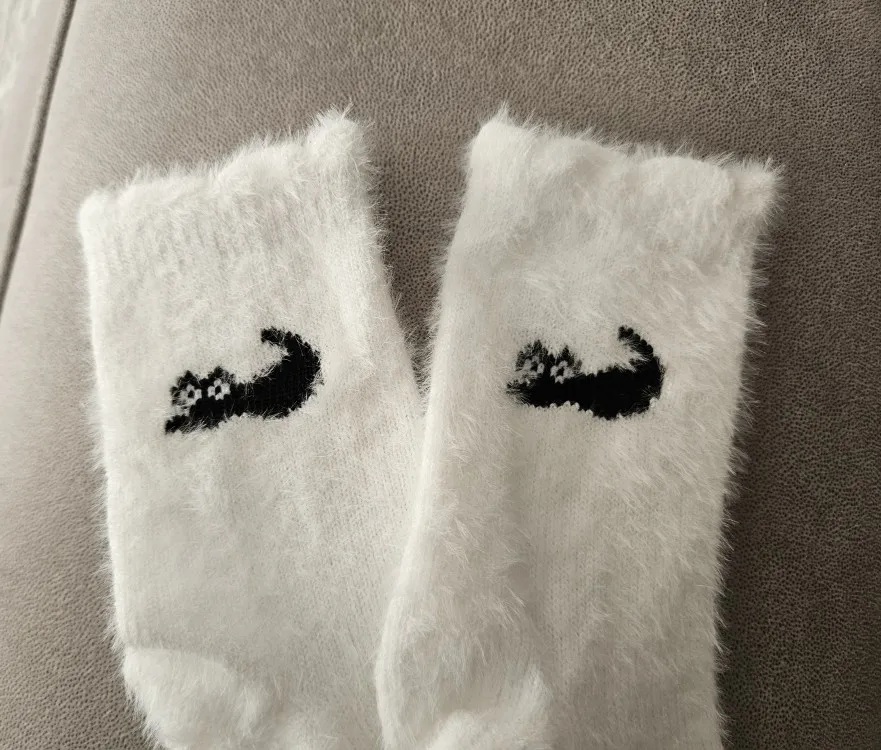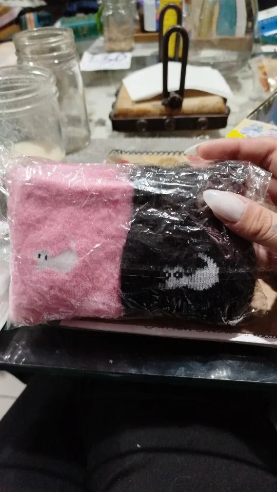 Описание не соответствует товару. Кошка не имеет ничего общего с фотографией. Плюс черный носок с большим изъяном с ниткой, висящей на всем носке, что делает его неприятным, когда вы его надеваете. Качество продукта остается хорошим несмотря ни на что, но он не толстый.