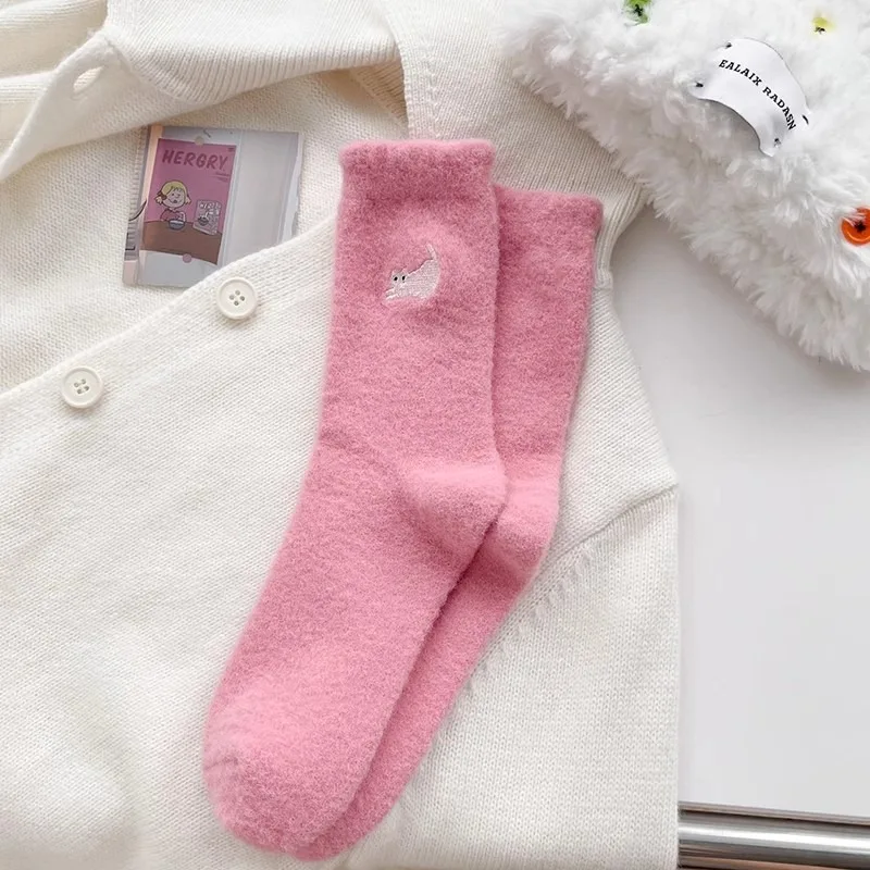 Носки женские из меха норки и флиса, теплые супер мягкие утепленные коралловые плюшевые носки, теплые носки для дома и сна, милые носки для зимы