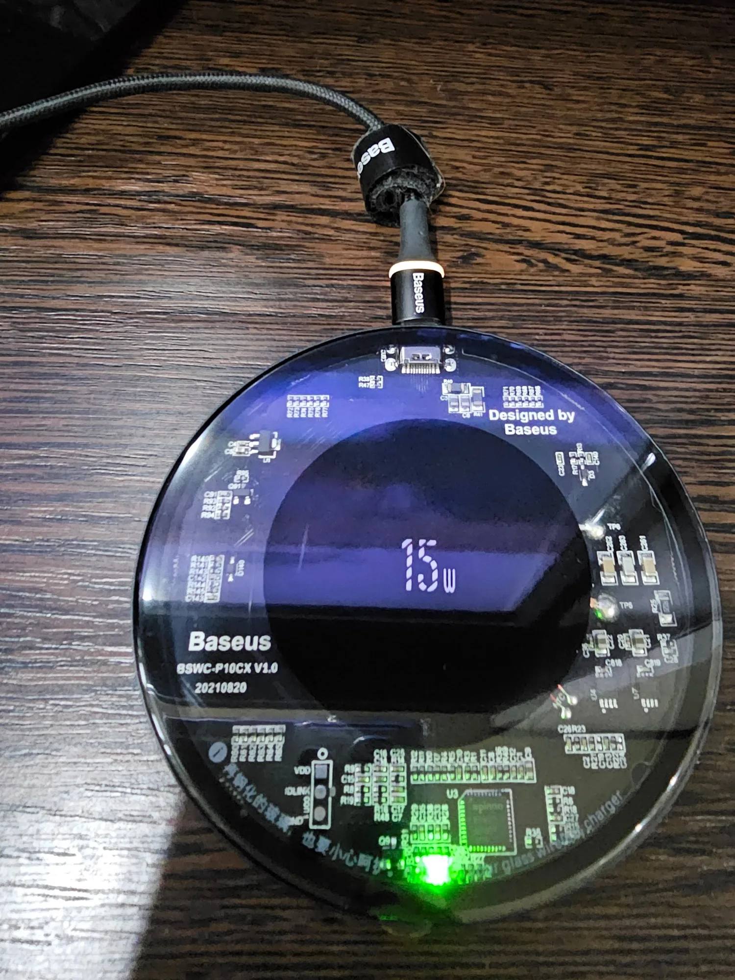 Беспроводное зарядное устройство, просто чудесное! Только купив его, я поняла, насколько это полезное, нужное и удобное приобретение. А от Baseus, оно ещё и надёжное. Очень люблю продукцию этого магазина, вся продукция качественная, стильная, надёжная. Зарядник имеет быструю зарядку, заряжает мой Samsung S23 ultra, очень быстро, кроме того очень стильно смотрится, за счёт прозрачного верха. Доставка 4 дня со склада в РФ, Покупкой очень довольна, рекомендую от души! Надёжный и порядочный магазин. Большое спасибо! ❤️