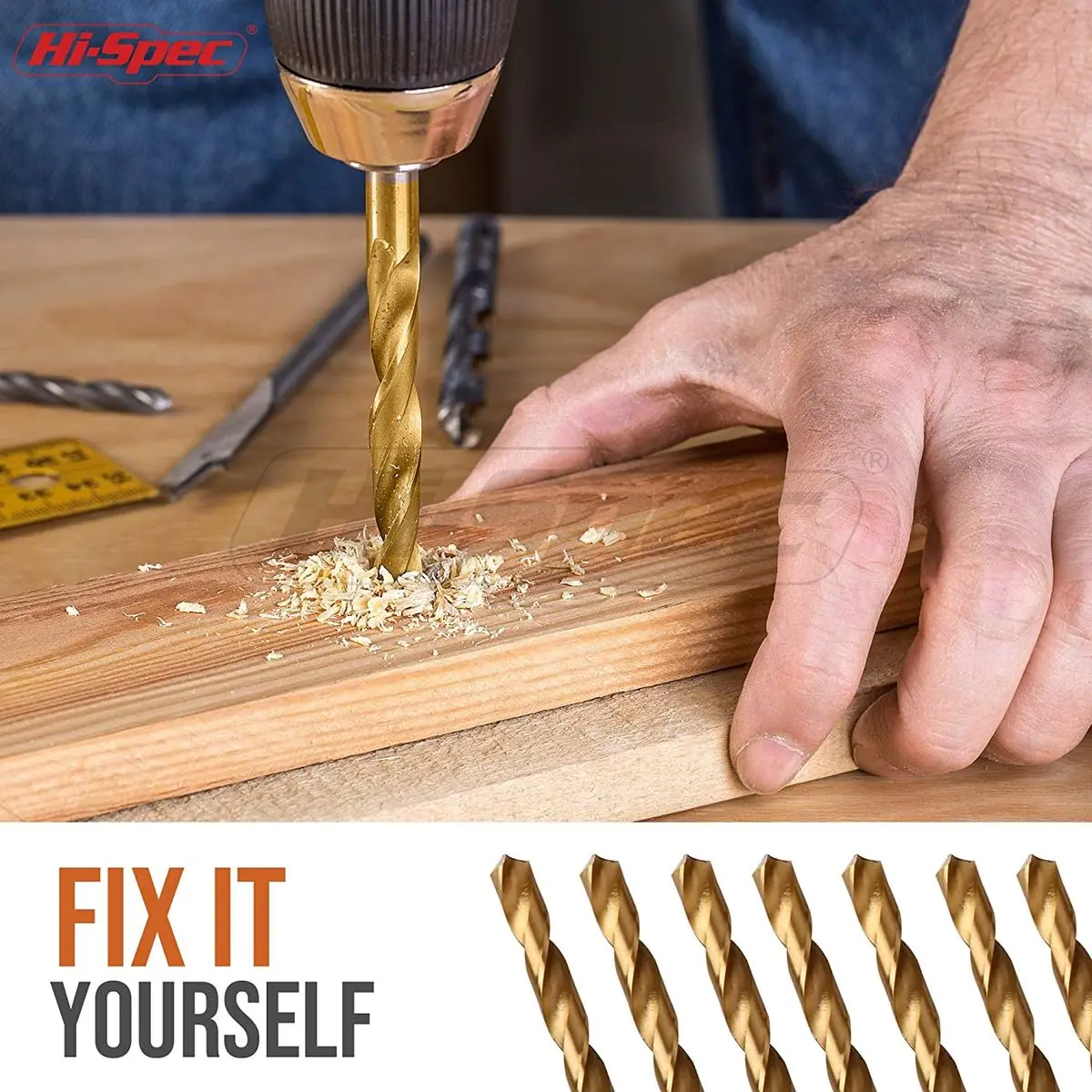 Металлические сверла из титана Hi-Spec HSS, 1-10 мм, 99 шт/130 шт