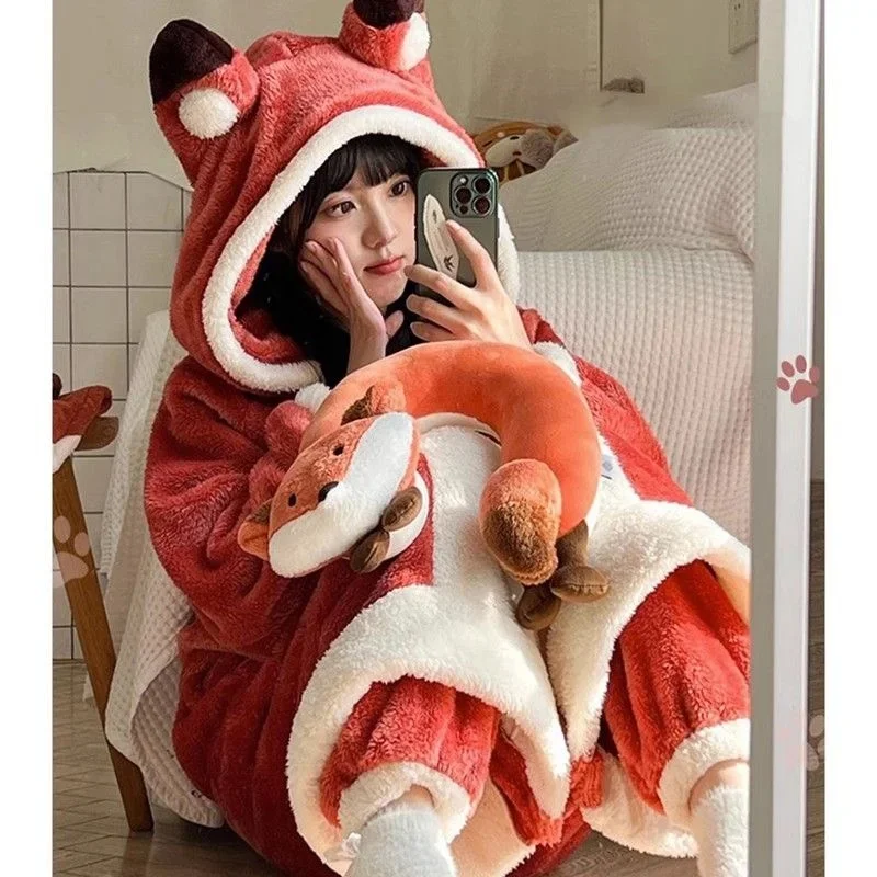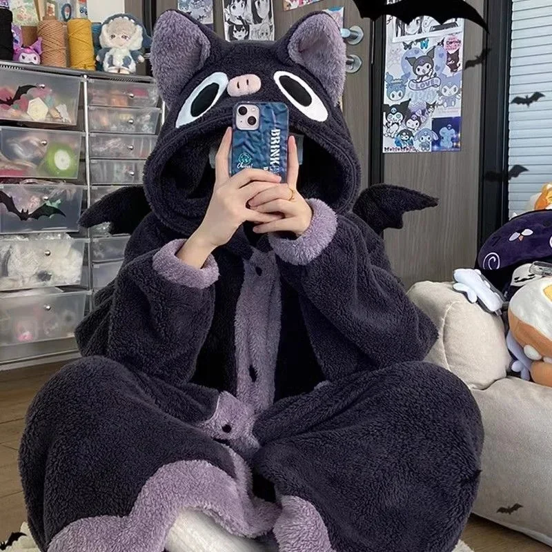 Пижама в виде малого панды, Мягкая Милая Пижама-комбинезон унисекс с животными, лисьим одеялом, коралловый бархат, теплая свободная Пижама-комбинезон летучая мышь, 9 стилей