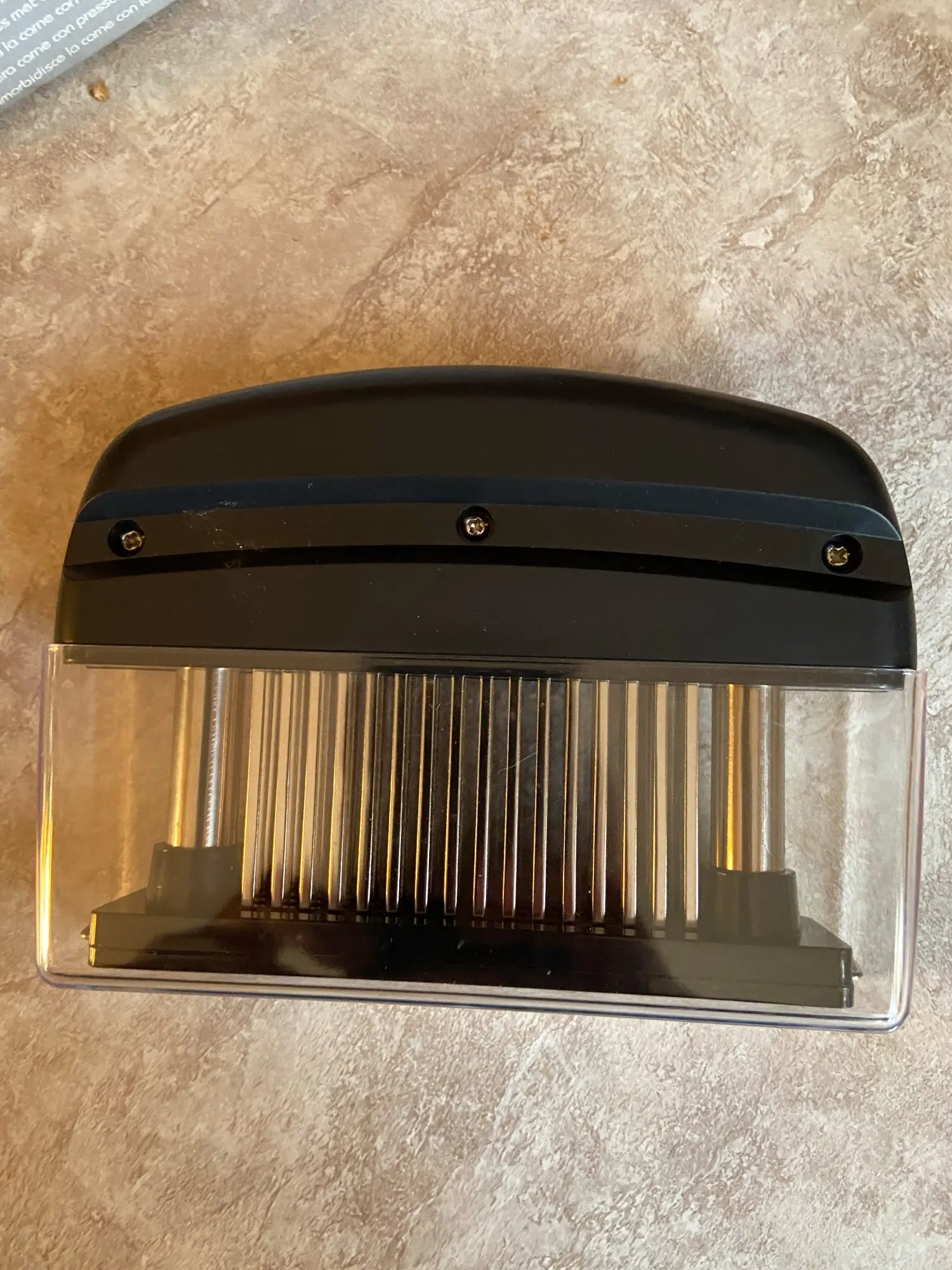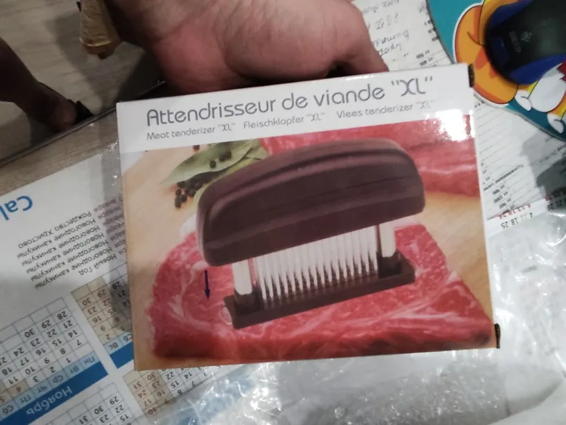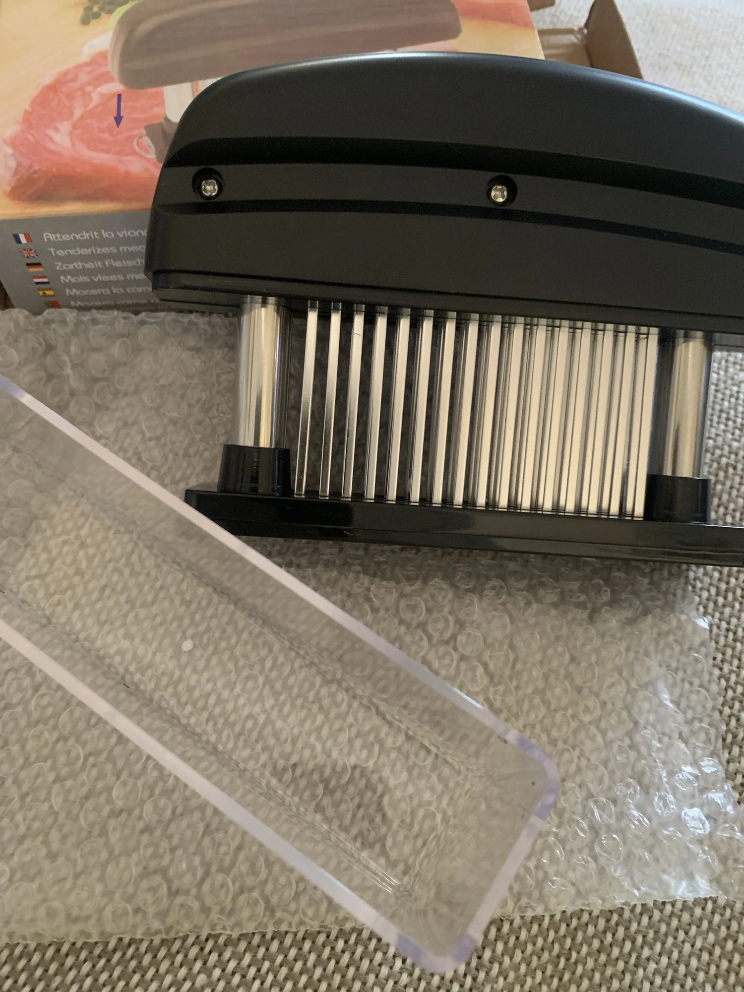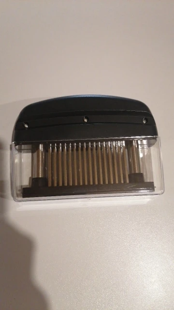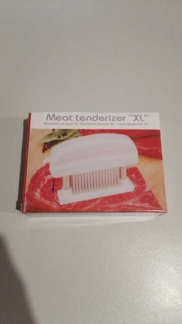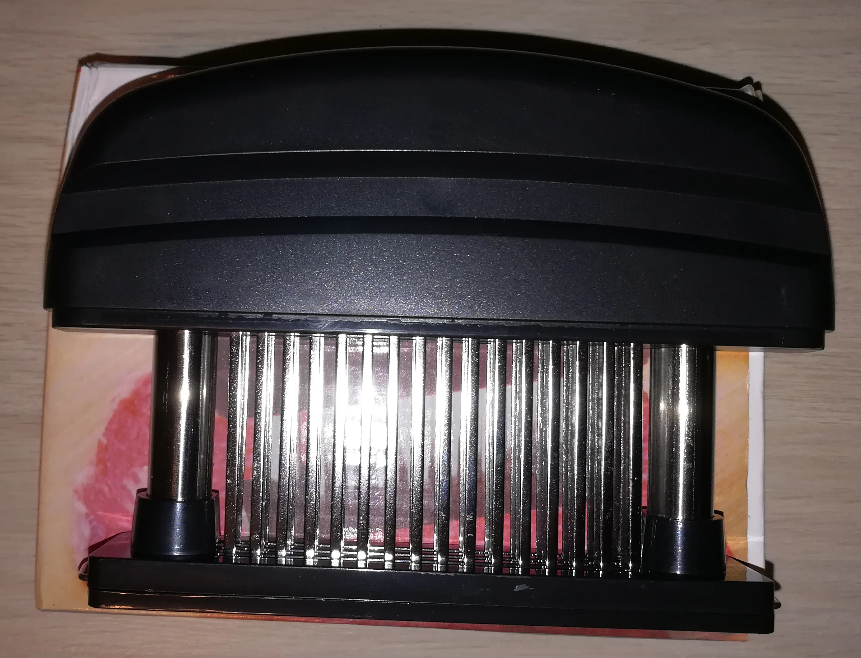 Продавца рекомендую- быстро обработал заказ и отправил. Получение в пункте выдачи Пятёрочка. Все легко и просто. Купил сразу два устройства. Себе и в подарок. Упаковано отлично. Фирменная упаковка не повреждена - дарить не стыдно. Опробовал на говяжьей вырезке. Отличный результат. Молотком, чтобы так обить, долго и шумно. А этим устройством легко. Мясо получилось сочное, нежное. Из куска толщиной в 40мм вышел большой и всего в 8-10мм. С приправой из Крымских трав вкус вышел очень тонкий, нежный. Рекомендую всем иметь под рукой такой прибор. Да, мыть легко.