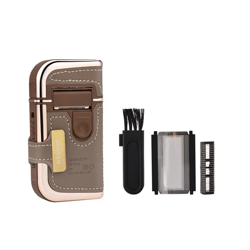 Дорожная электробритва с отделкой под кожу и зеркальной поверхностью